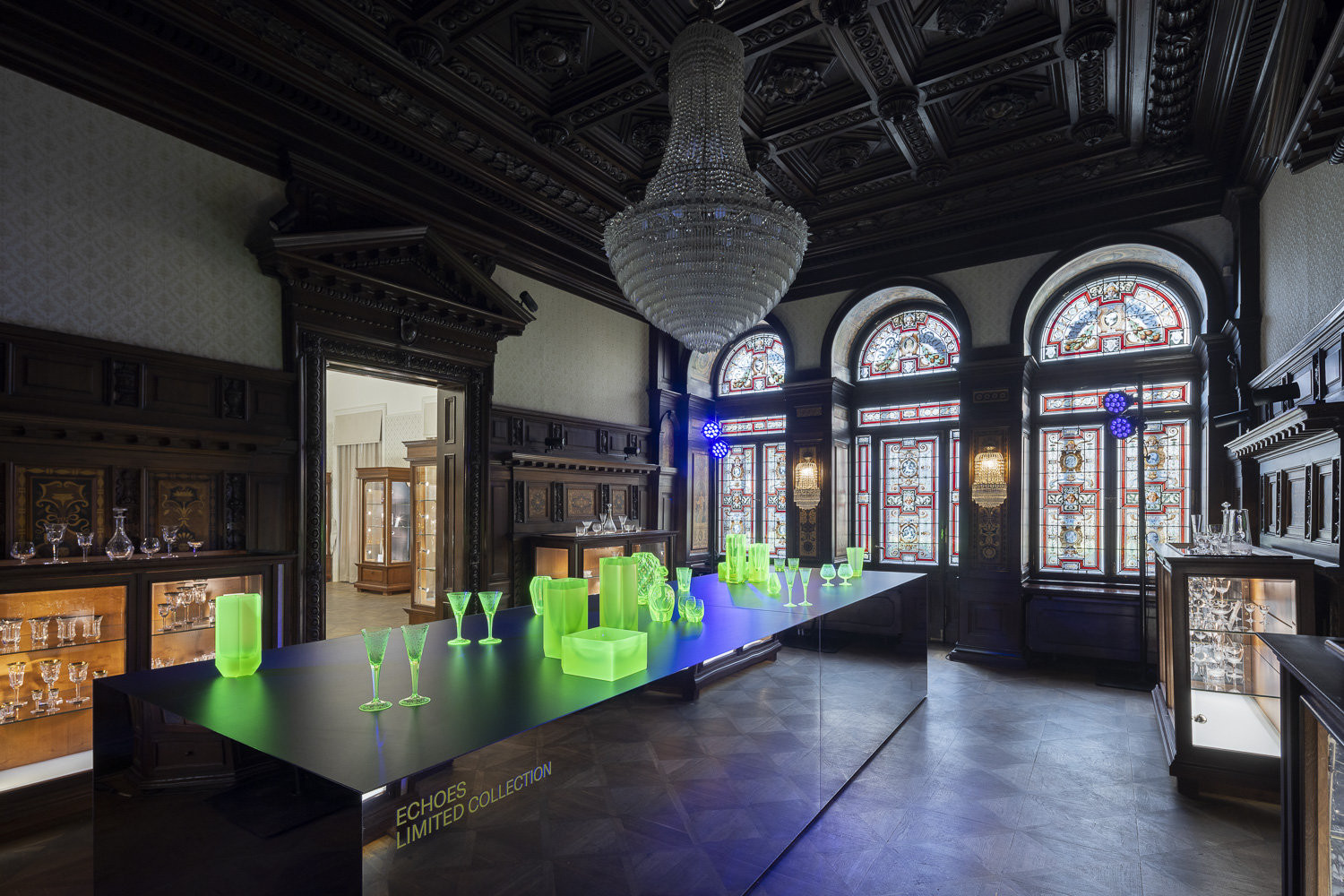 K oslavě stého výročí prodejní galerie Moser Na Příkopě a století moserovských barev vznikla Ultra limitovaná kolekce Echoes, která bude k vidění v prostorách galerie Moser do konce listopadu 2025.