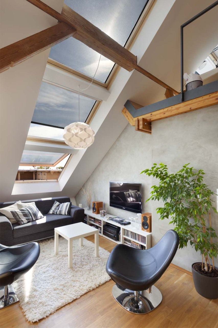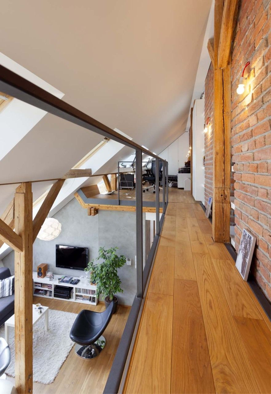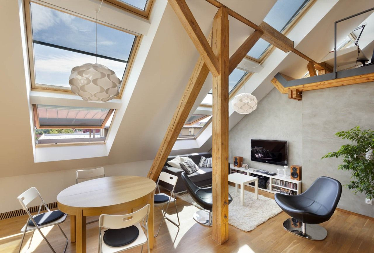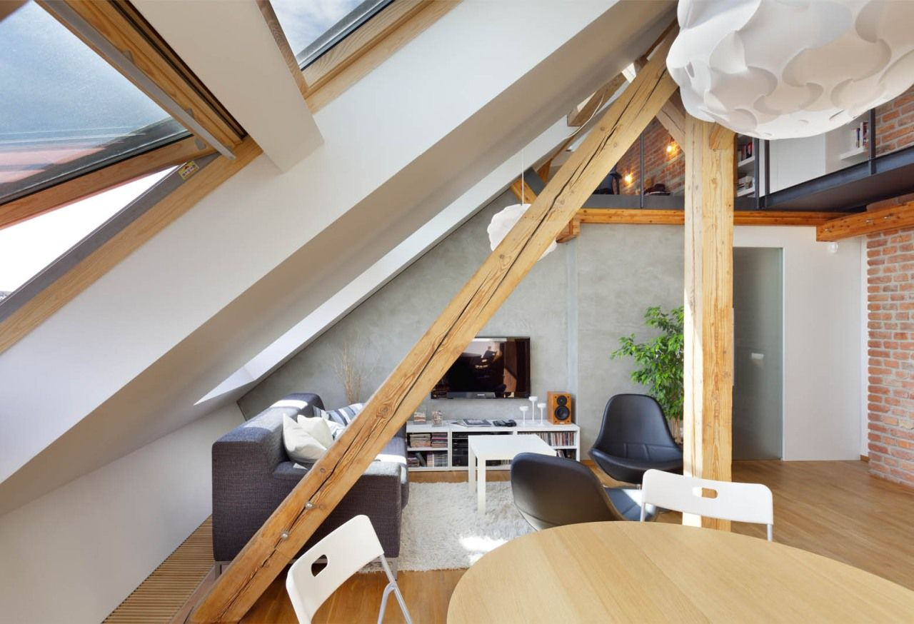 Při hledání prostoru pro svůj nový byt narazil mladý manželský pár v pražské čtvrti Bubeneč na nevyužívanou půdu krásného činžovního domu ze třicátých let minulého století. Místo tou dobou sloužilo jako sušárna na prádlo, oči architektonicky vzdělaných zájemců ovšem ihned rozpoznaly jeho potenciál pro vytvoření vysněného podkrovního bytu. „Odjakživa nás lákalo bydlení na půdě. Povedlo se nám najít tento unikátní prostor, který má skvělou orientaci, polohu, výhledy a je umístěn nedaleko bývalé královské obory Stromovka,“ popisuje majitel a zároveň architekt bytu Dalibor Hlaváček.