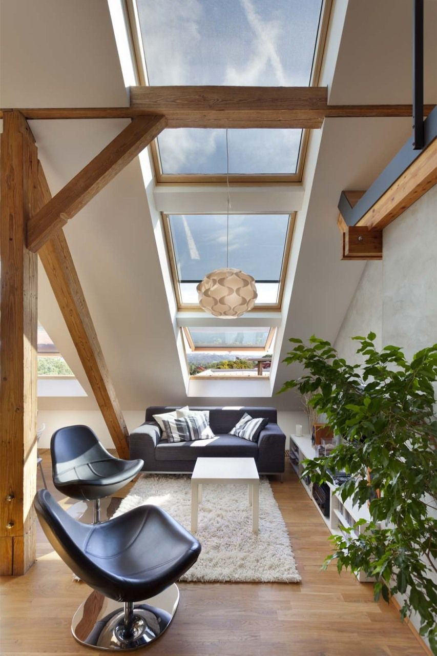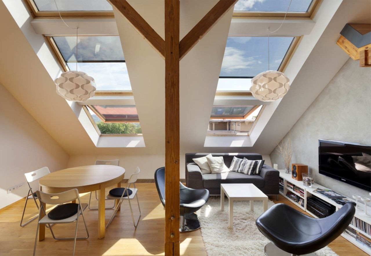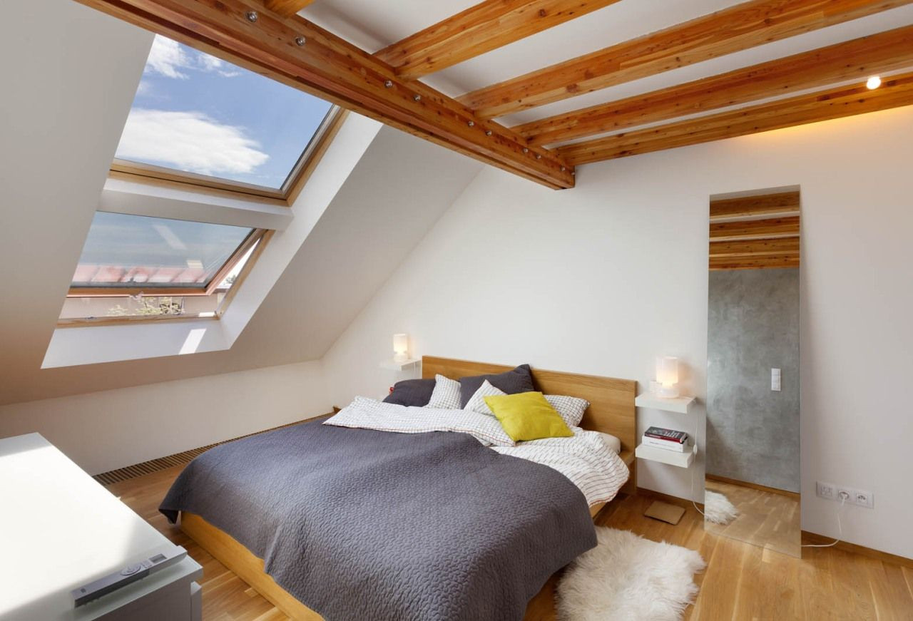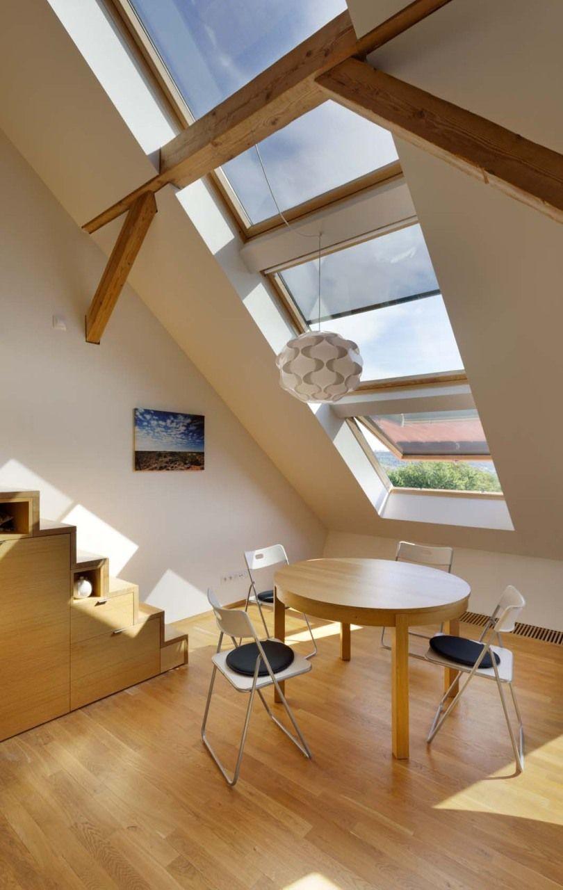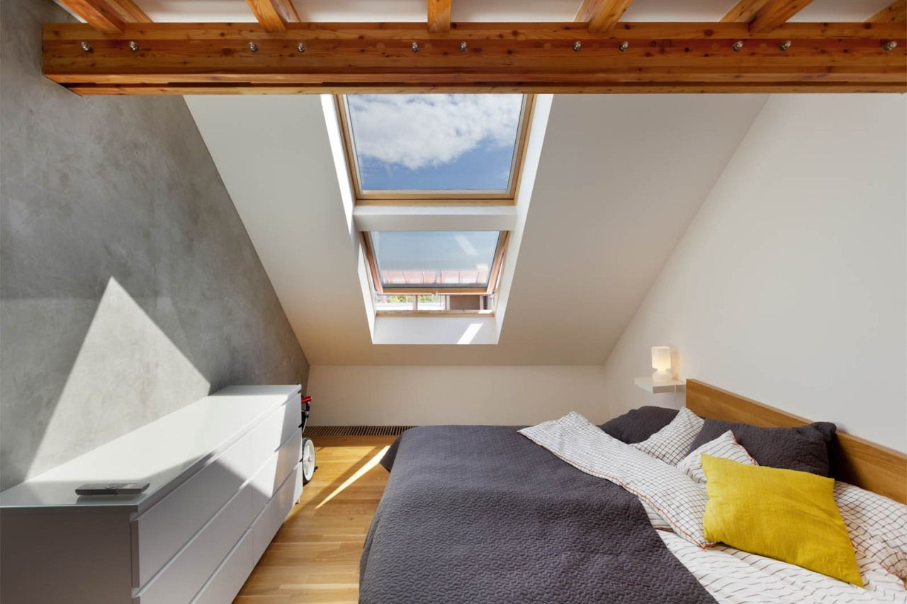 Kromě vizuální a funkční stránky podkrovního mezonetu se manželé soustředili také na nadstandardní přísun slunečního světla a čerstvého vzduchu, který zaručuje zdravé příjemné klima. Dostatečné osvětlení a větrání u podkrovních prostor často představují velké problémy. Jejich podcenění se totiž může výrazně podepsat na energetické náročnosti bytu. Bubenečský mezonet proto pracuje celkem s dvanácti střešními okny VELUX, jejichž uzpůsobení se stará o to, aby se byt v létě nepřehříval a v zimě naopak neplýtval teplem. Z toho důvodu jsou všechna okna opatřena venkovními markýzami, které spolu s automatickým systémem stínění a větrání optimalizují teplotu uvnitř bytu.