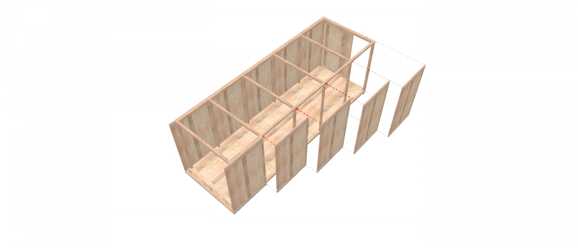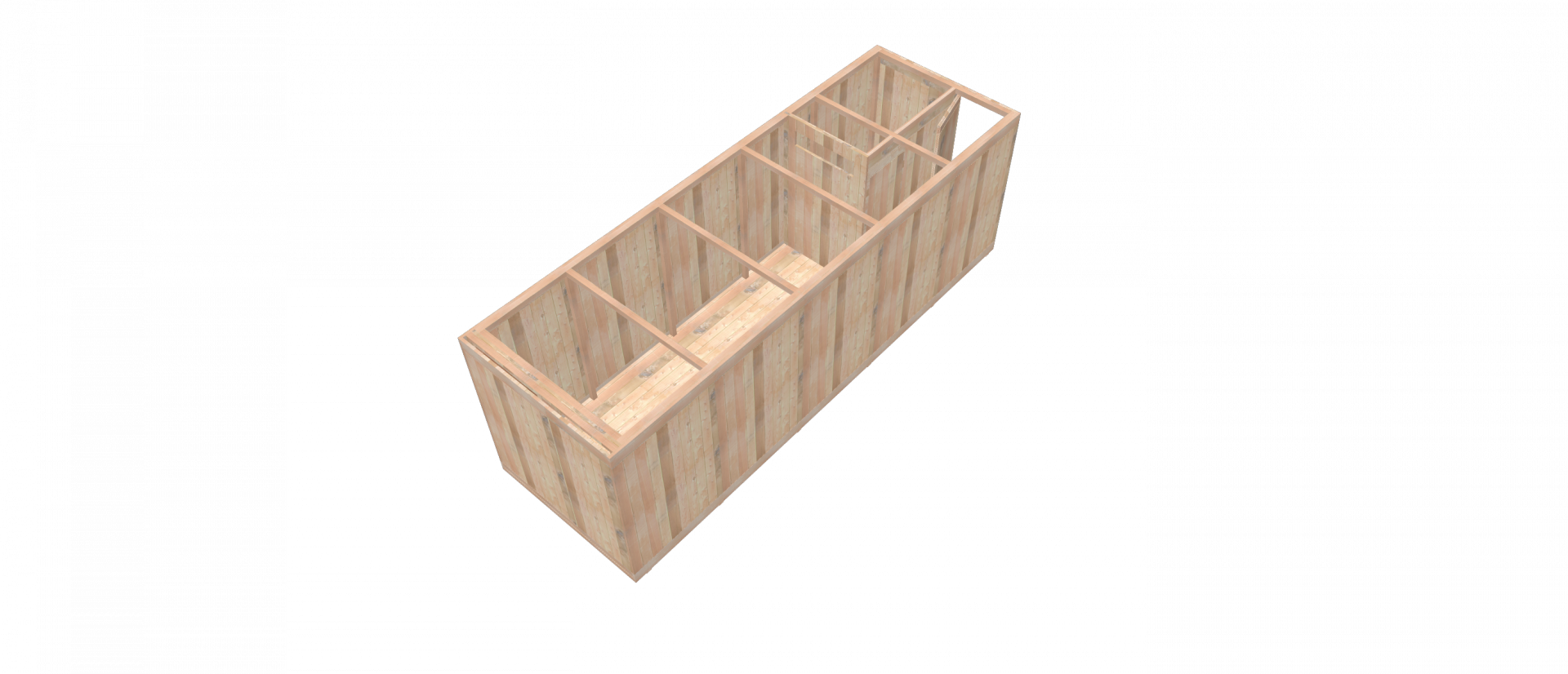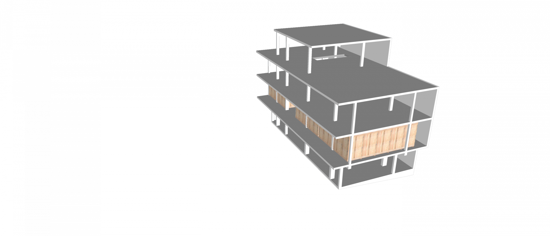 První a druhé patro jsou v podstatě stejné, tvořené z šesti kontejnerů a skladu. V posledním patře si může člověk užít výhledu na moře a obrovské, otevřené verandy.