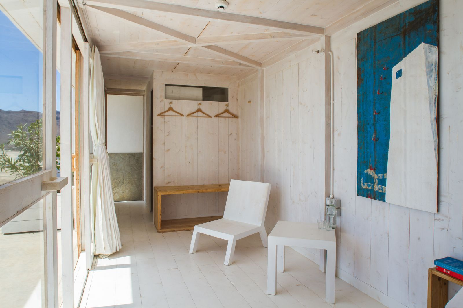 Hotel je sestavený z 13 dřevěných kontejnerů, každý funguje jako jednotlivý pokoj. Ty jsou zasazené v hrubé betonové struktuře a vymalovány limetkovým tmelem.