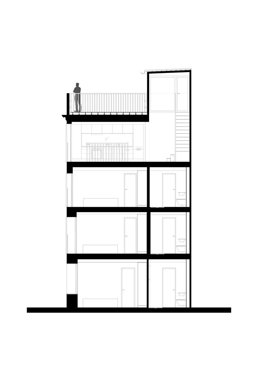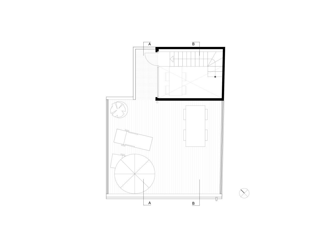 Činžovní dům Carrer Del Sol N° 3, půdorys střešní terasa, KRESINGS