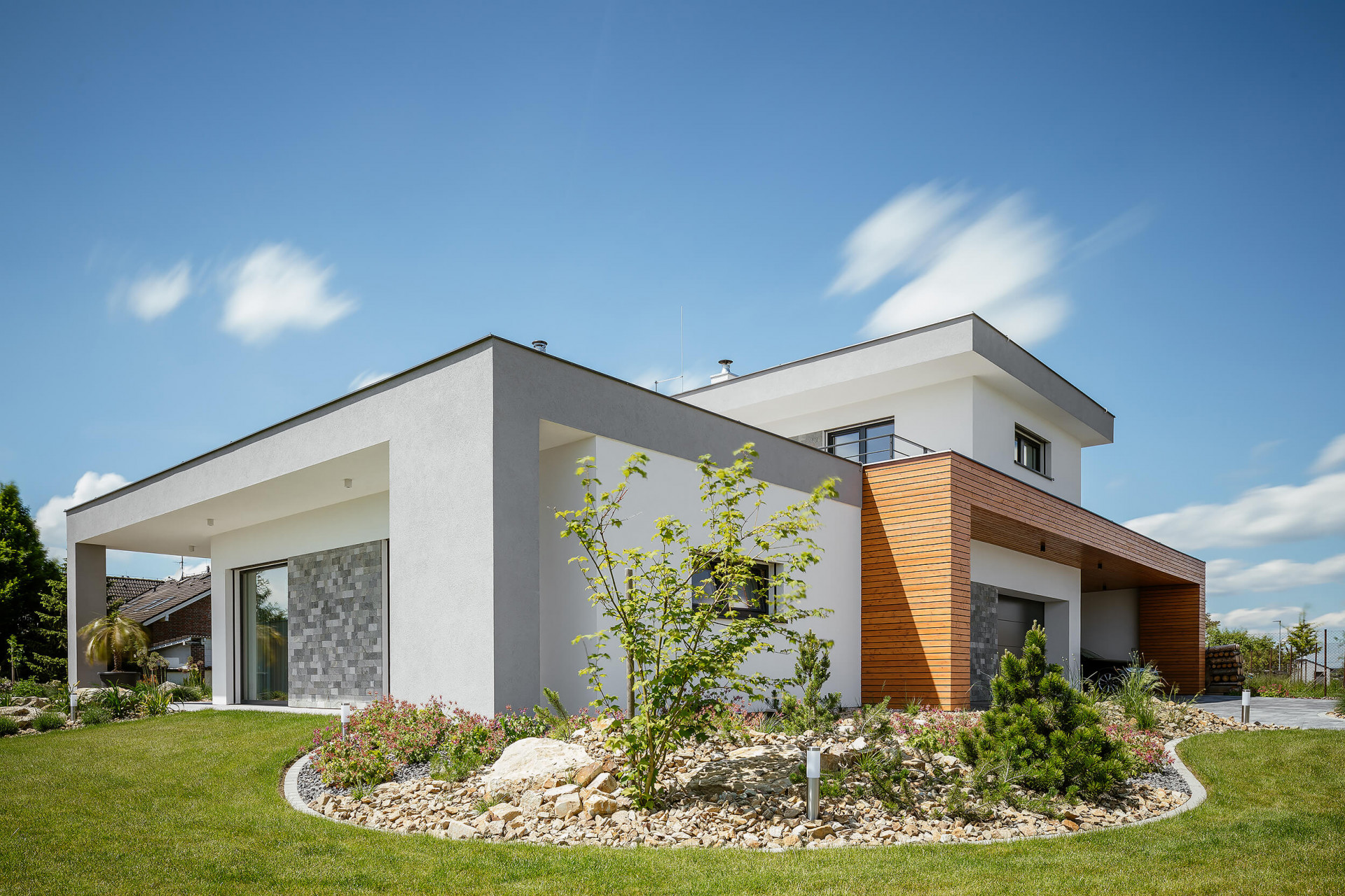 Rodinný dům v Litomyšli zaujme na první pohled výraznými pultovými střechami s praktickými přesahy, které chrání před sluncem i deštěm. Bíle omítnutá stavba stojí na okraji Litomyšle, konkrétně v jeho rozvojové oblasti. Za jejím návrhem stojí Dan Merta ze Studia MA a David Lukas z ateliéru Lukas arch, oba přitom často pracují s vrstvením střídmých geometrických objemů.
