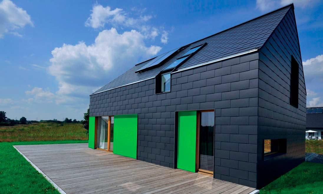 Veľké okná orientované k slnku (na južnej a západnej strane) získavajú solárnu energiu pasívnym spôsobom. Ťažké, masívne prvky vo vnútri domu slúžia na vyrovnávanie energie, aby sa zamedzilo prehrievaniu domu v lete. Tmavá fasáda z vláknocementových bridlíc (s farebnými časťami) ohrievaná slnkom, znižuje tepelné straty.