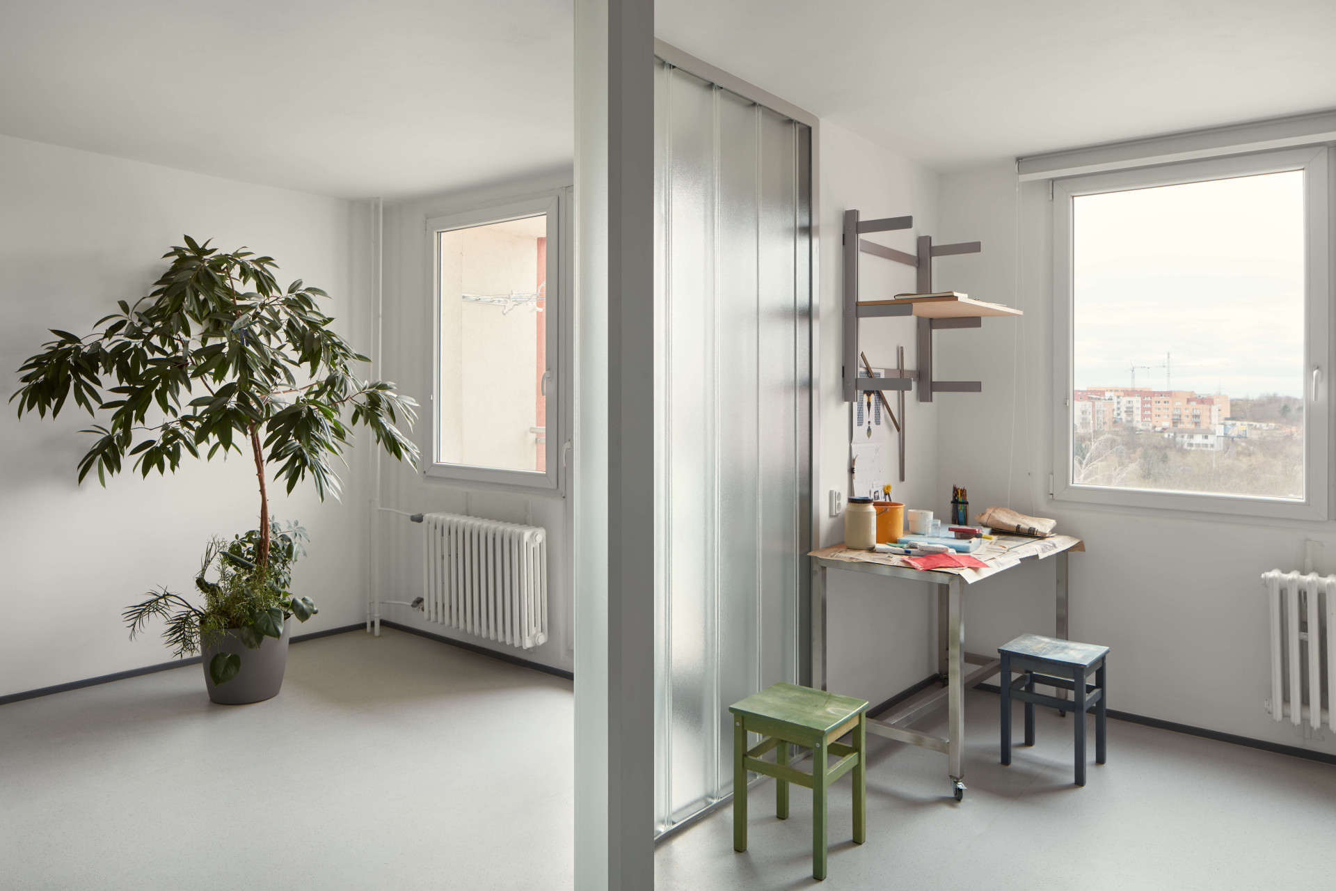 Pražský ateliér NEUHĀUSL HUNAL má za sebou již třetí neotřelou rekonstrukci bytu v paneláku. Nyní s nevšedním požadavkem přišel sám klient, sklář a sochař. Vytvořit prostor, který bude také ateliérem. A úplně bez dveří.