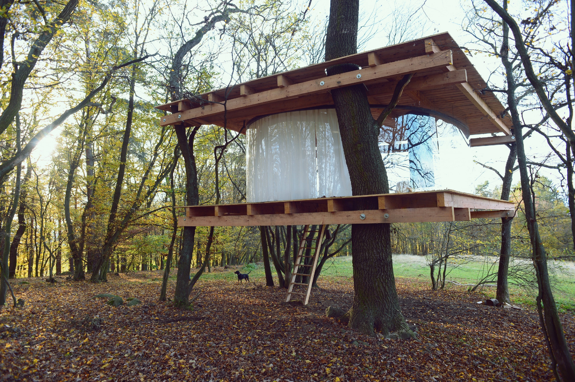 Experimentální tree house od Jana Tyrpekla levituje mezi korunami stromů