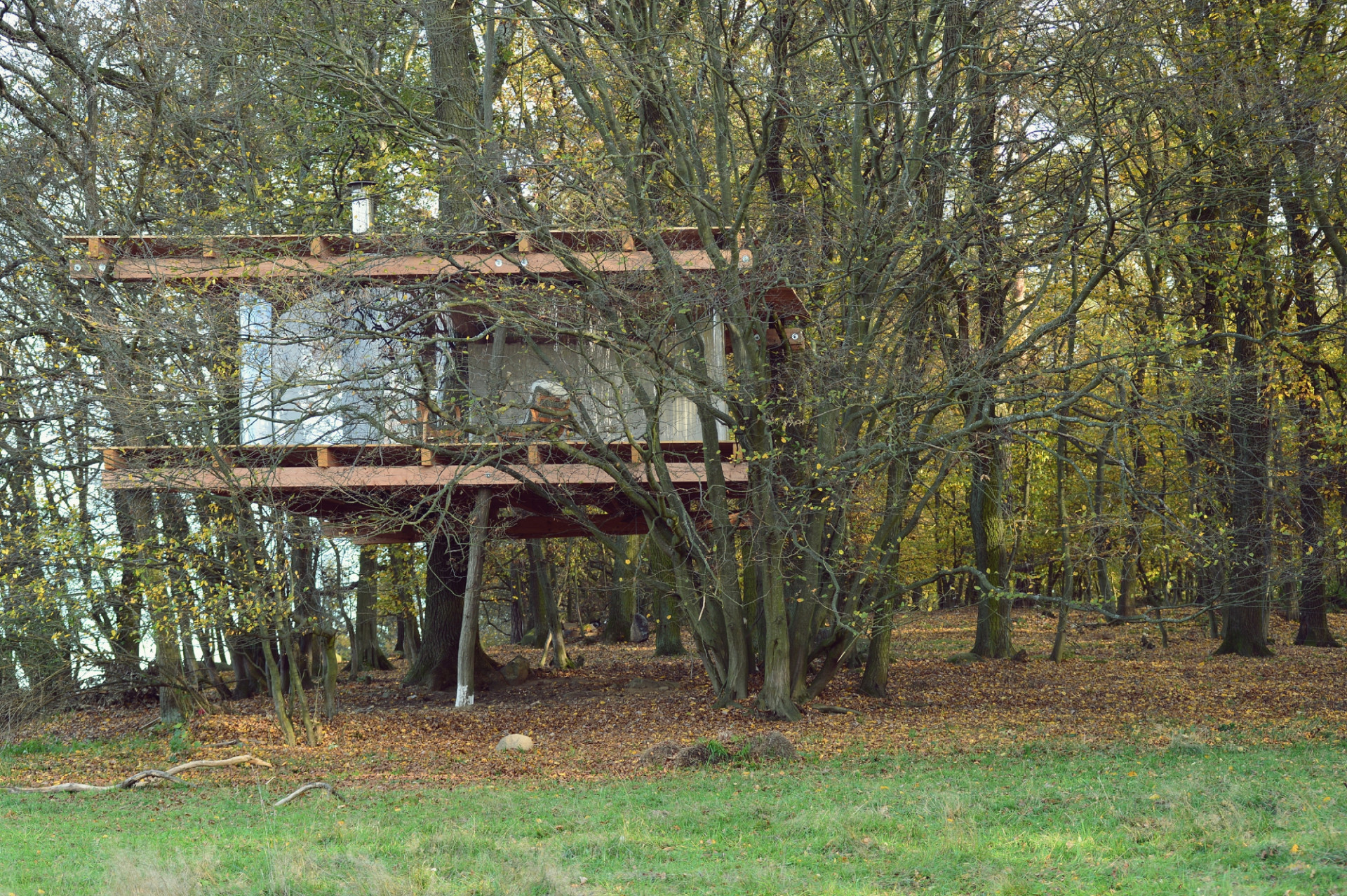 Svépomocí a na své náklady zrealizoval architekt Jan Tyrpekl společně se svými kolegy Jaroslavem Kejřem, Adamem Ulrichem a Janem Hykem experimentální tree house, který se nachází v lese u středočeské obce Hrusice. Objekt levituje v korunách stromů a nabízí návštěvníkům bezprostřední kontakt s posázavskou krajinou. Stavbu tvořenou dvěma dřevěnými platformami a transparentním pláštěm může po dohodě navštívit kdokoliv.