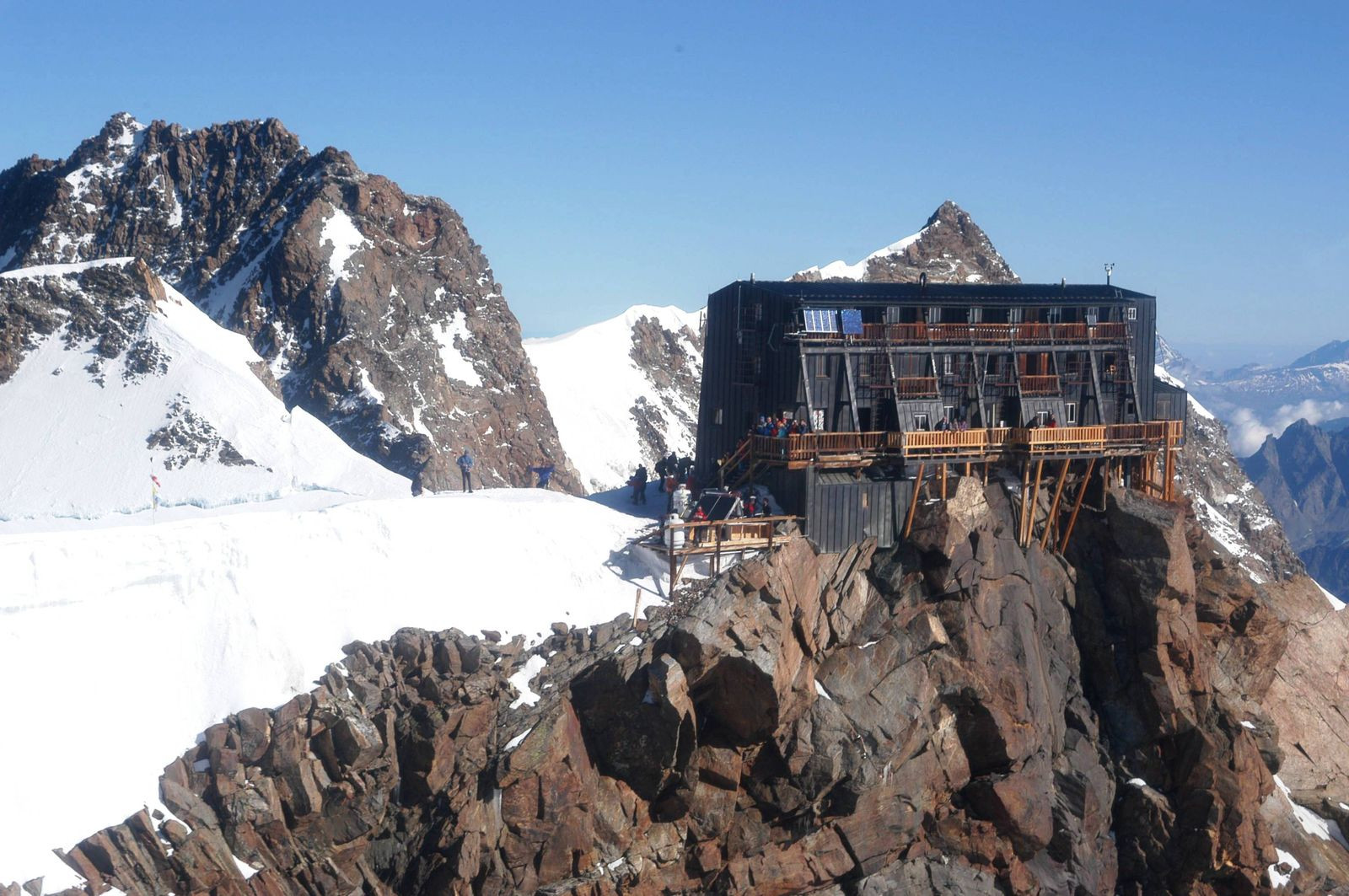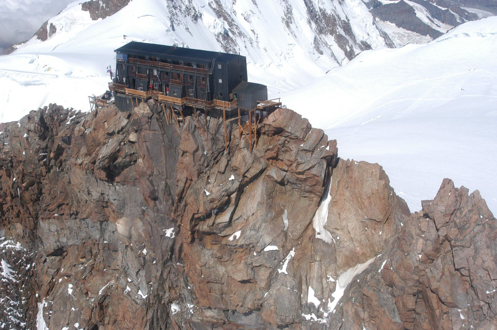 Ukotvení stavby k zemi zajišťuje 18 ocelových lan o průměru 12 milimetrů upevněných ke skalám na italské a k ledu na švýcarské straně. Chata Capanna Regina Margherita pojmenovaná po zmíněné italské královně se nyní nachází na italském území, švýcarská hranice ovšem prochází těsně za ní. Jedná se o jednu z mála laboratoří na světě umístěných nad 4000 metrů nad mořem, kromě ubytování momentálně slouží zdravotnímu středisku pro zkoumání vlivu vysoké nadmořské výšky na člověka.