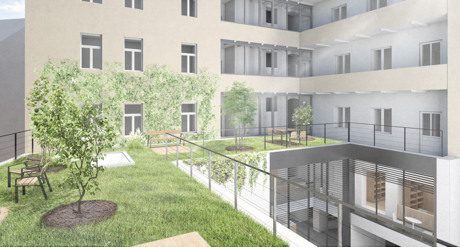 Česká komora autorizovaných inženýrů a techniků činných ve výstavbě (ČKAIT) se s projektem na rozšíření svých prostorových kapacit aktivně zabývala už od roku 2015. V plánu bylo především využití vnitrobloku pro vytvoření nových kanceláří, sálu a výstavních prostor. ČKAIT proto nejdříve vypsala ideovou studentskou soutěž a následně zpracovala i objemovou studii. Minulý rok ovšem došlo k vyhlášení vyzvané architektonické soutěže formou soutěžního dialogu, do které komora přizvala studia FAM Architekti, EHL & KOUMAR Architekti a THER Architektonický ateliér. Soutěž na dostavbu a rekonstrukci domu v pražské Sokolské ulici vyhráli architekti z ateliéru FAM.