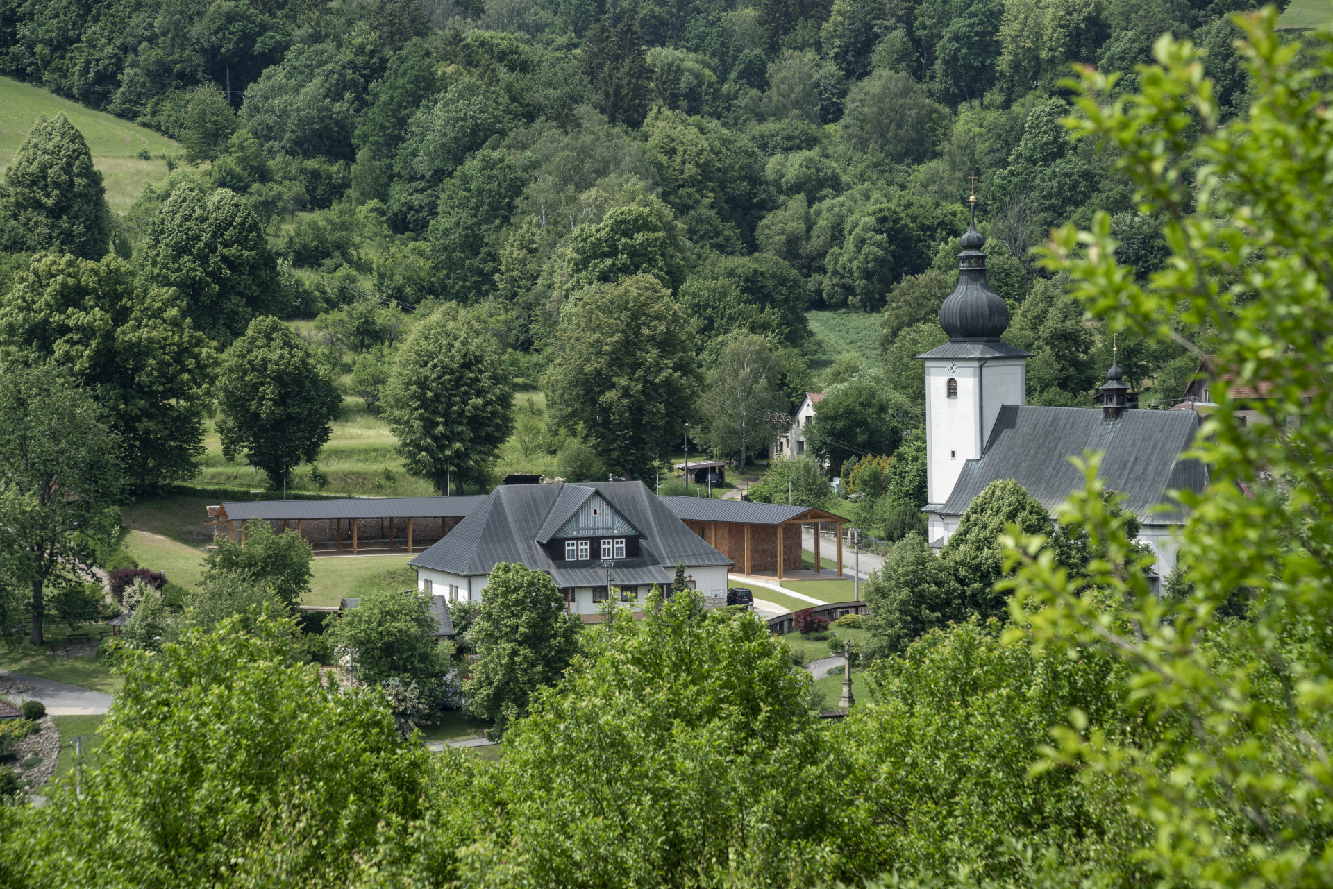 Nové farní centrum v obci na úpatí Vizovických vrchů a Javorníků v sobě ukrývá jak společenský sál, tak kryté veřejné prostory. Svým podlouhlým tvarem symbolizuje procesní cestu.