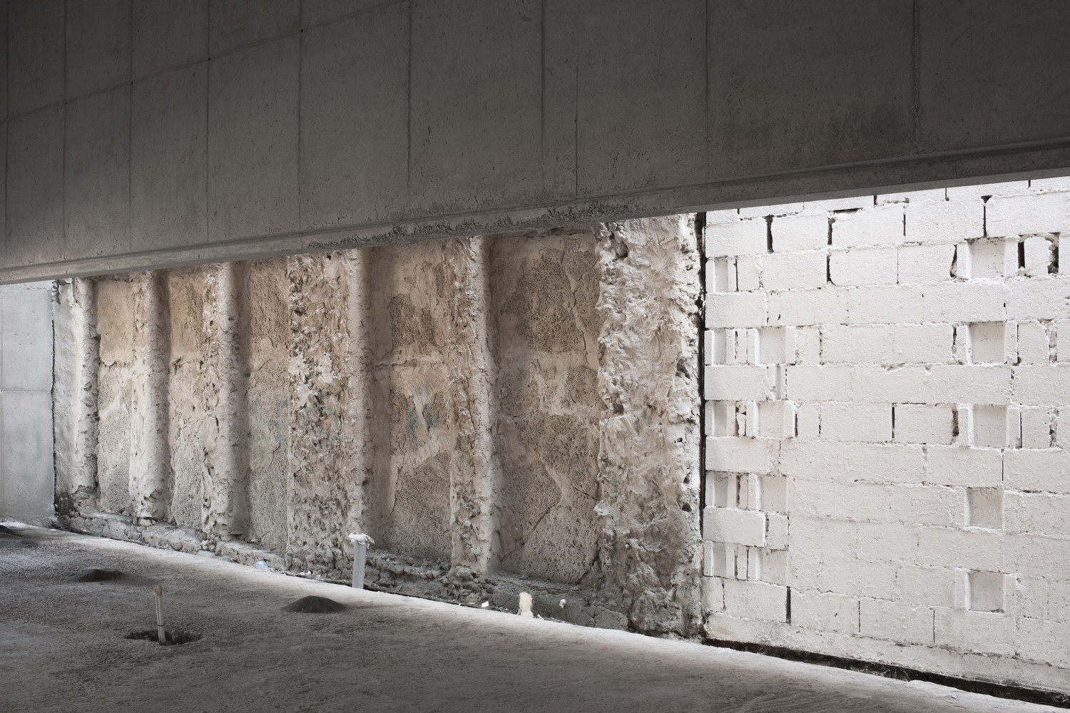 Zdi okolních budov se skládají z kombinace různých materiálů. Objevuje se na nich i tradiční korálový kámen a korálové suti, stavební materiál produkovaný z derivátu mořského korálu, který se často objevuje právě u tradičních muharrackých budov. Autoři projektu se tedy rozhodli vyplnit dlouhou úzkou proluku budovou, která je v přízemí po celé své délce otevřená k oběma sousedním zdem a nabízí tak neotřelý pohled do stavebního vývoje Bahrajnu.