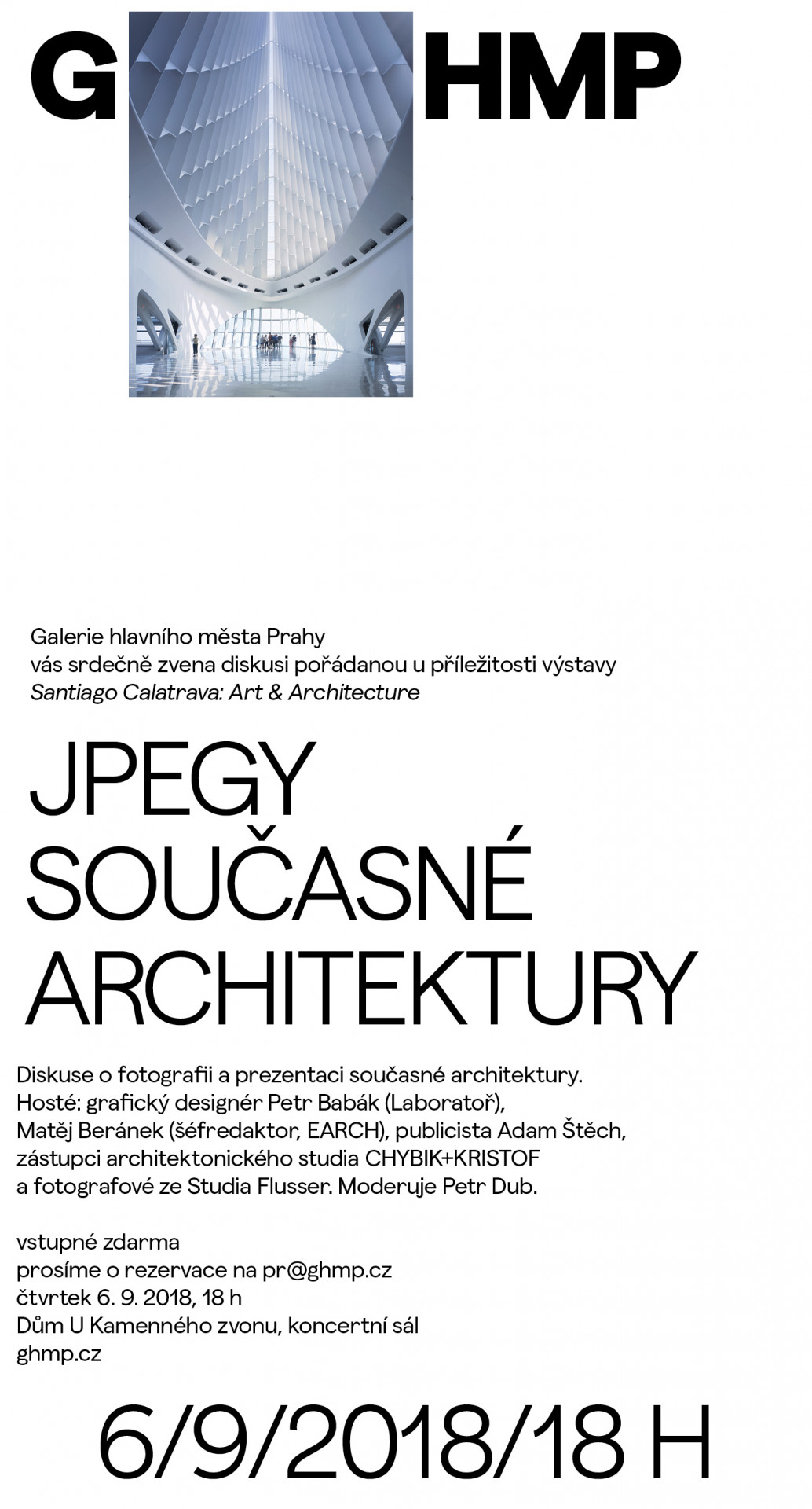 Galerie hlavního města Prahy pořádá u příležitosti výstavy Santiago Calatrava: Art & Architecture diskuzi, která se zaměří na aspekty fotografie současné architektury a grafické prezentace architektů.