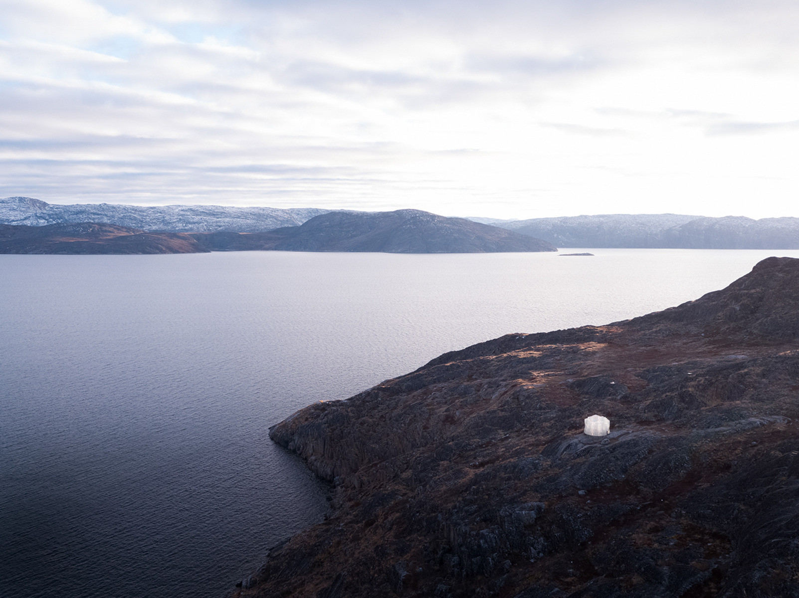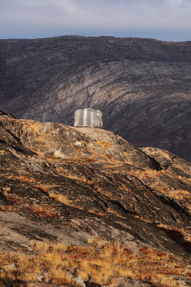 Švédský architekt Konstantin Ikonomidis navrhnul skleněný pavilon zasazený do panenské krajiny grónského pohoří v kraji Qeqqata. Zvolené místo je téměř opuštěné, a proto si tamní krajina stále uchovává svou drsnou krásu.