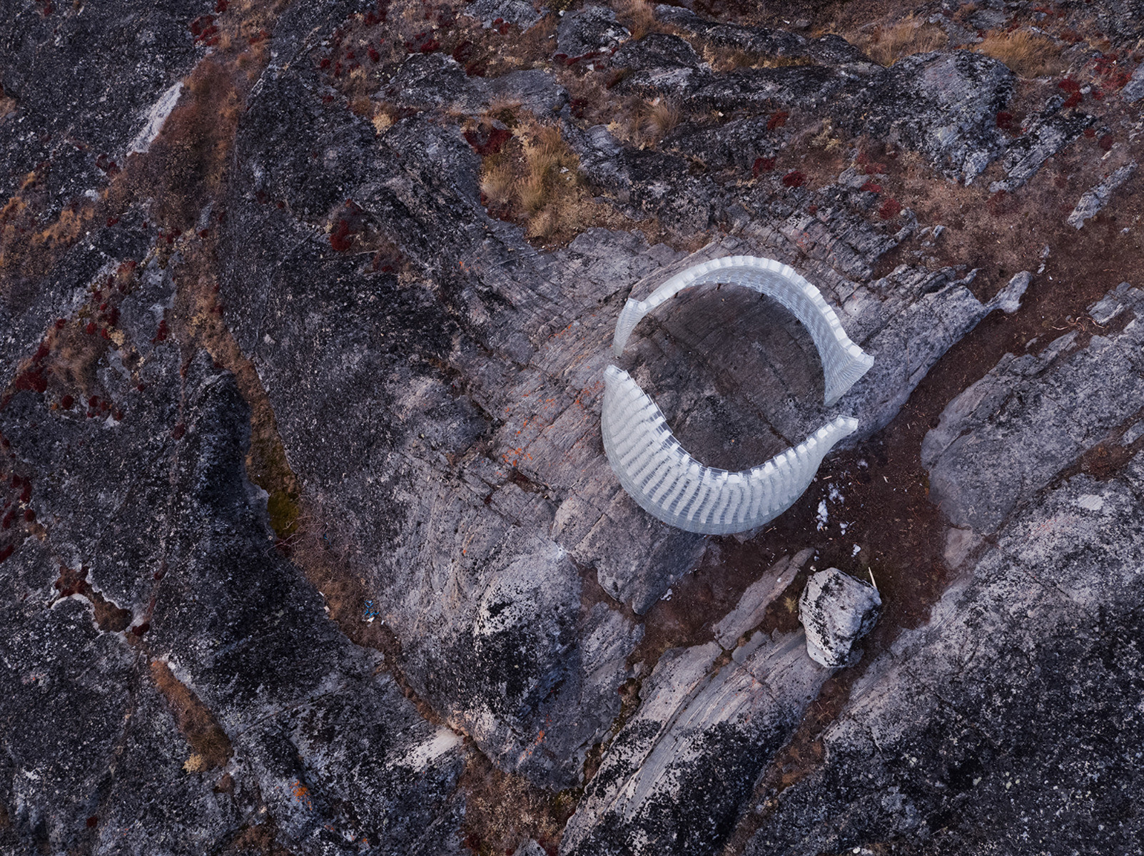 „Umístění bylo vybráno s ohledem k místní přírodě a ve snaze najít rovnováhu v tak neuvěřitelné krajině,“ vysvětluje architekt. Pavilon se nicméně neváže jen ke svému fyzickému prostředí, jeho podoba vychází rovněž z původní kultury Inuitů, jejichž znalosti a tradiční stavitelské techniky jsou dnes nedocenitelným dědictvím.