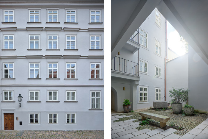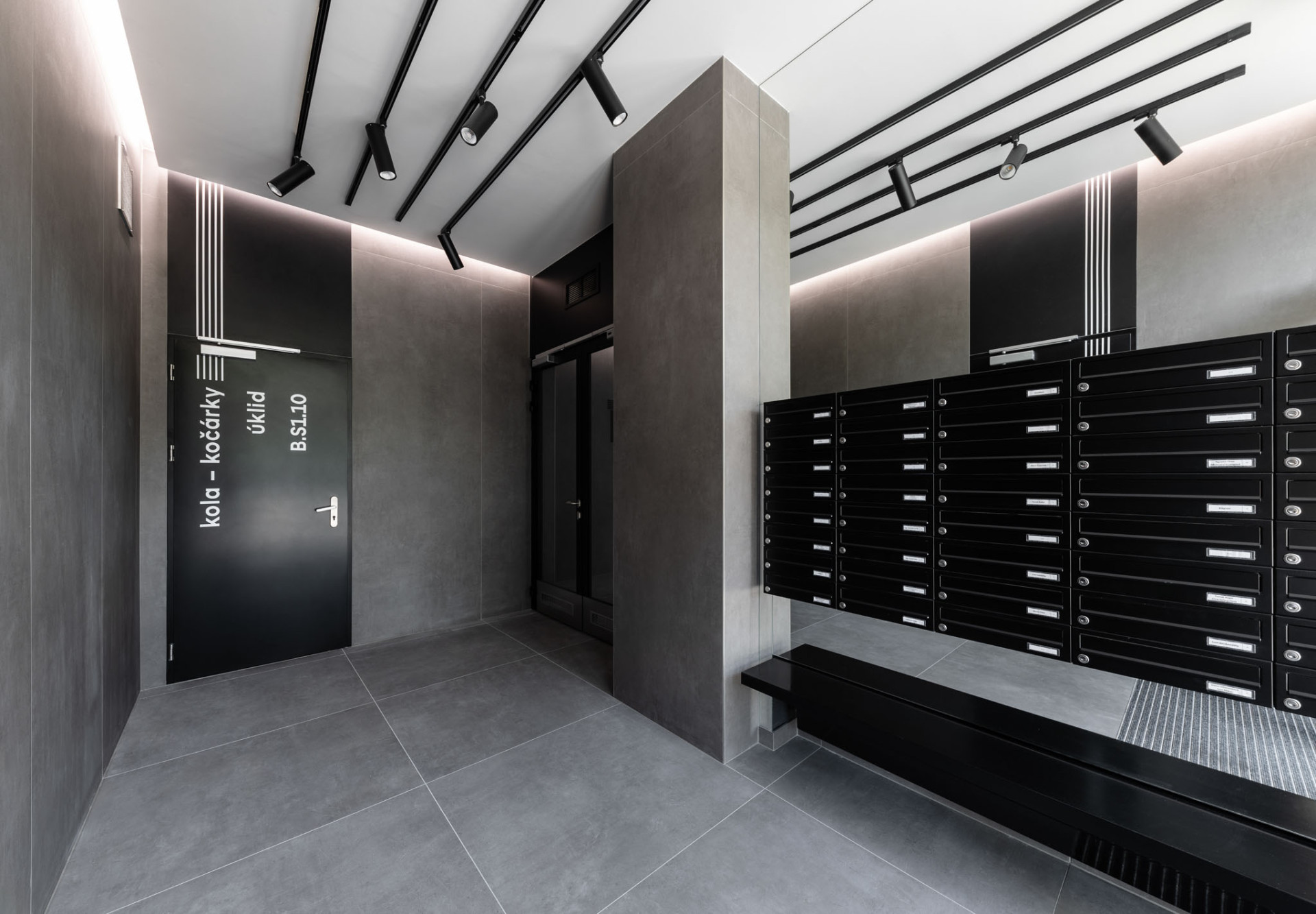 Housle i viola. Vchody tu mají svá domovní znamení a celkově se jedná o nadstandardně zpracovaný bytový projekt.