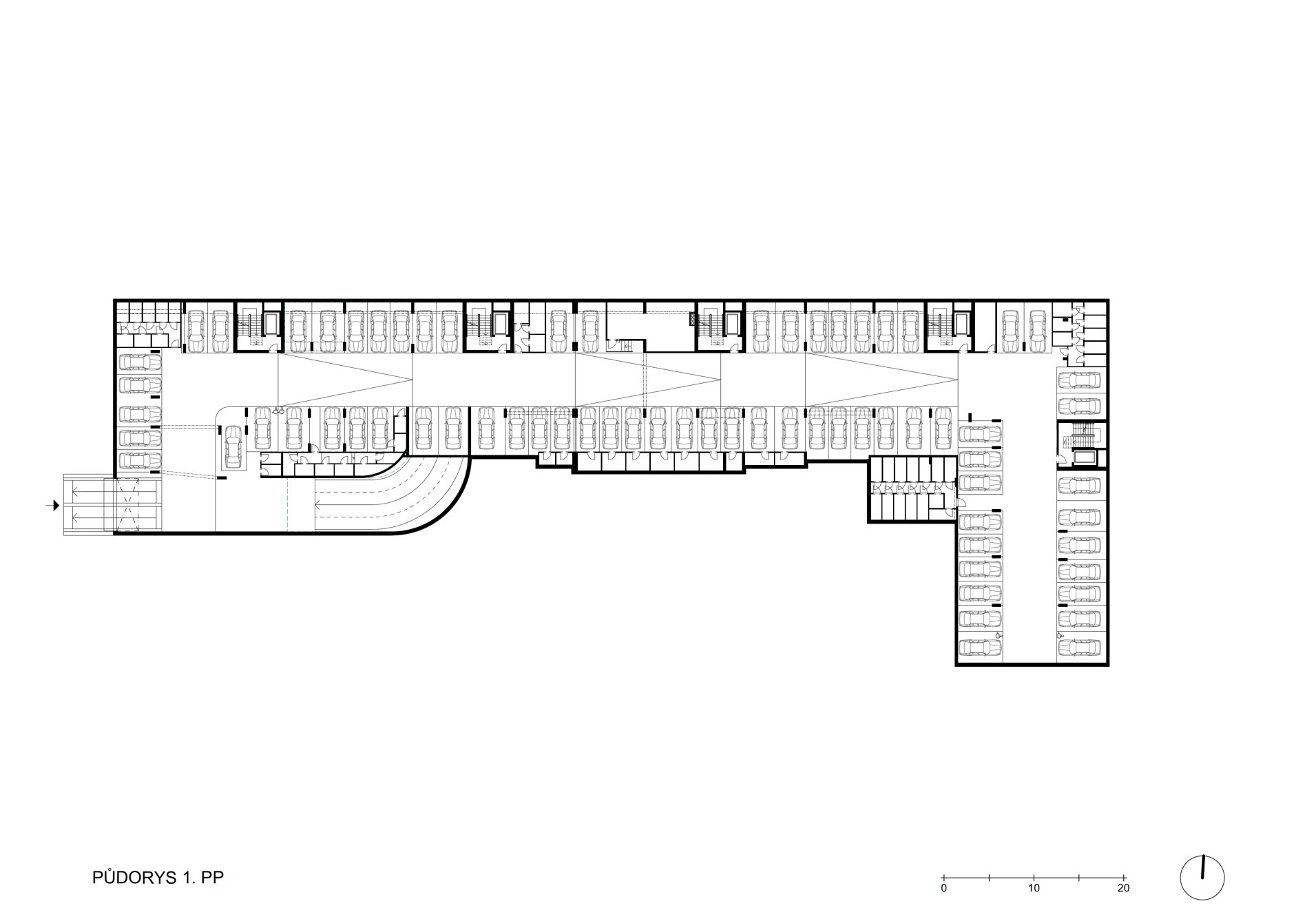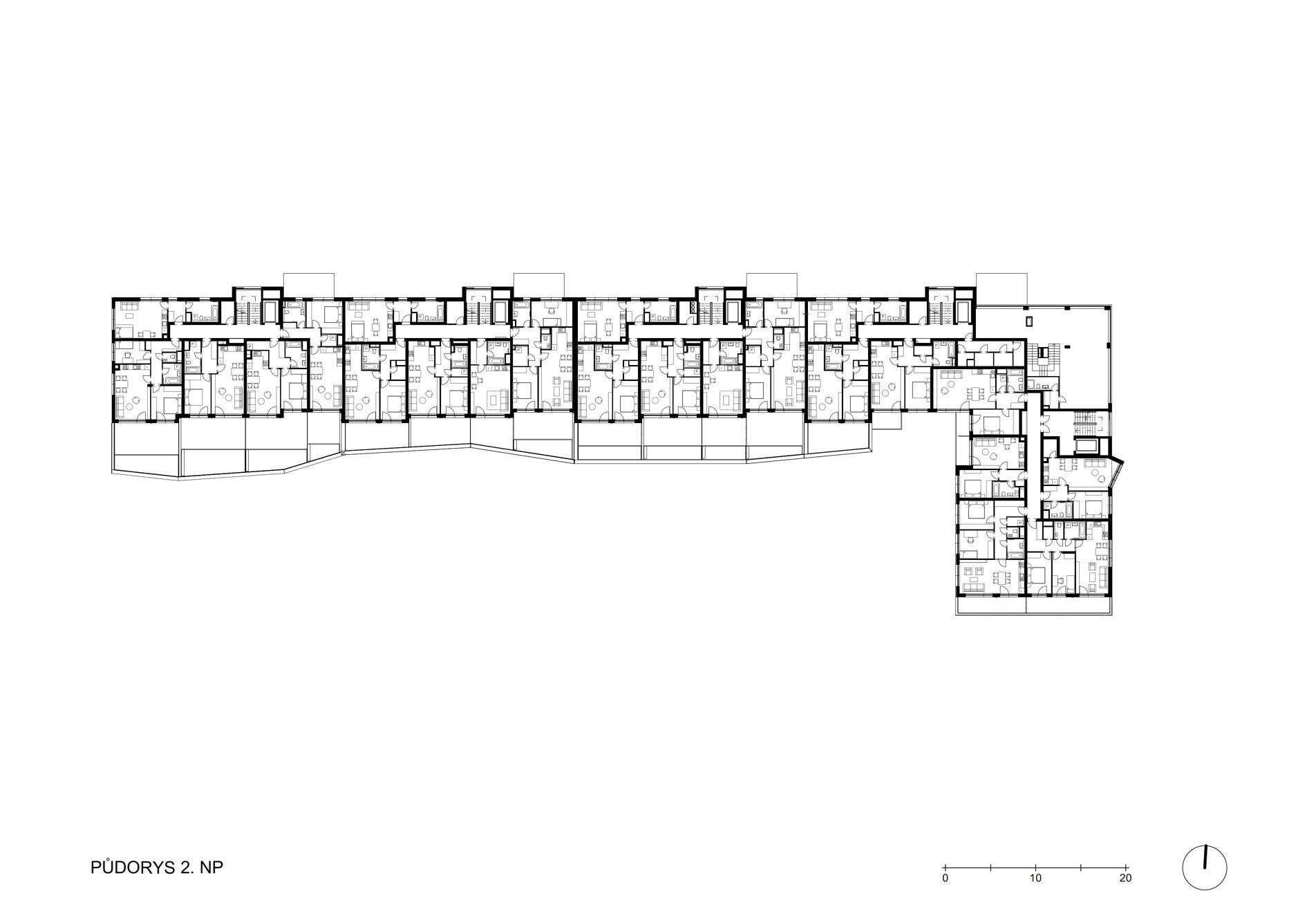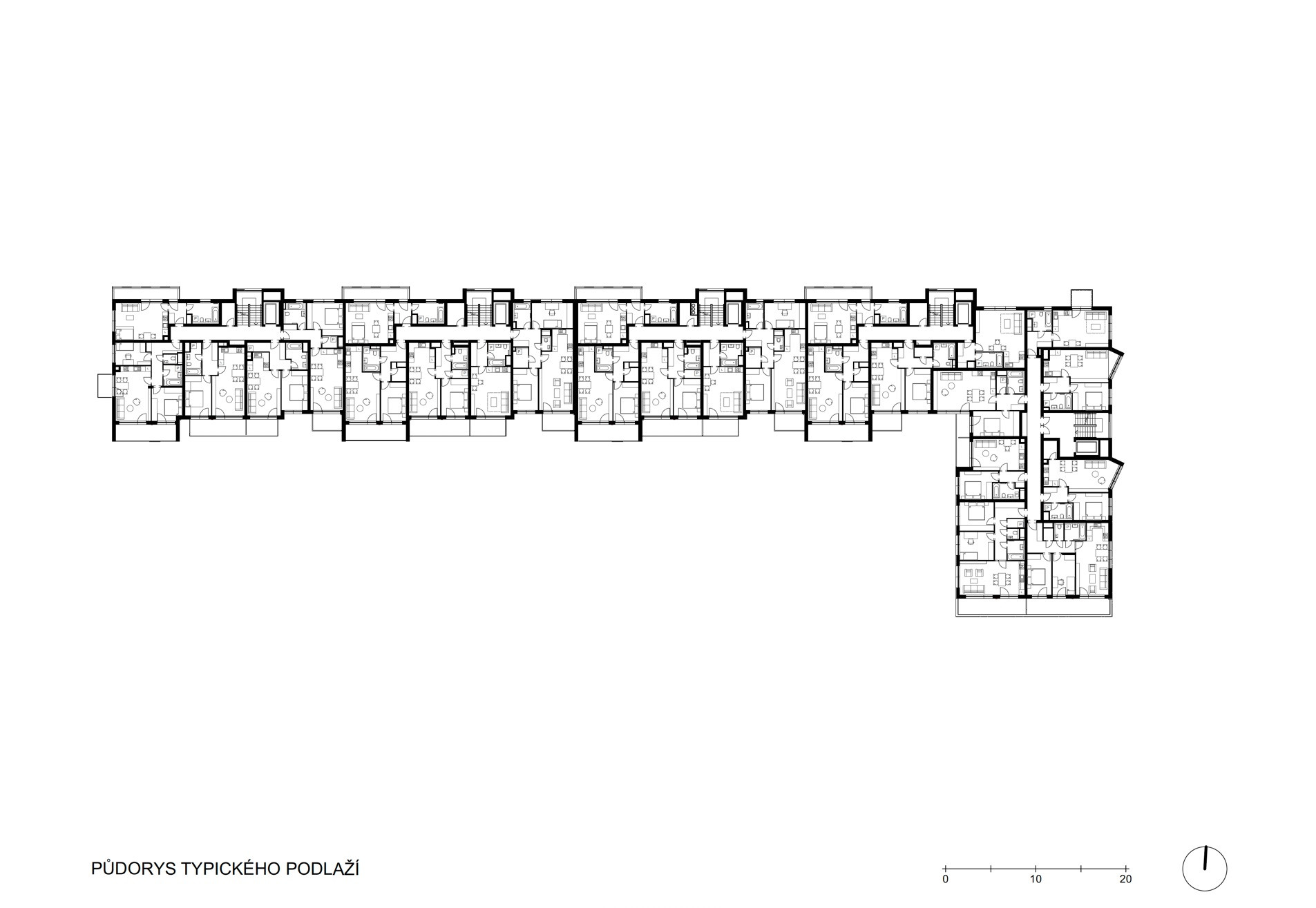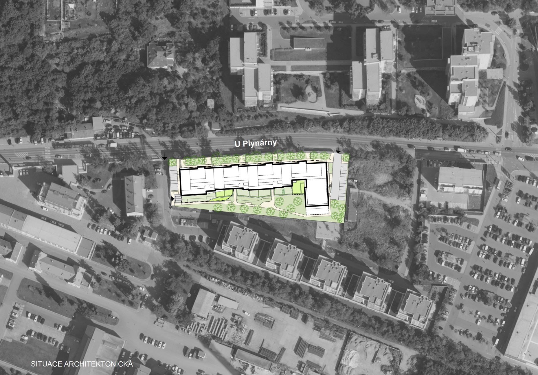 Dům má tvar L a architekti ze studia Podlipný Sladký architekti chytře pracovali se světovými stranami i rušnou ulicí U Plynárny. Většina bytů je obrácena na jih, západ a východ dovnitř „elka“. Tam je parkový prostor, najde se tu klouzačka a další herní prvky pro děti. Byty v prvním podlaží mají předzahrádky.