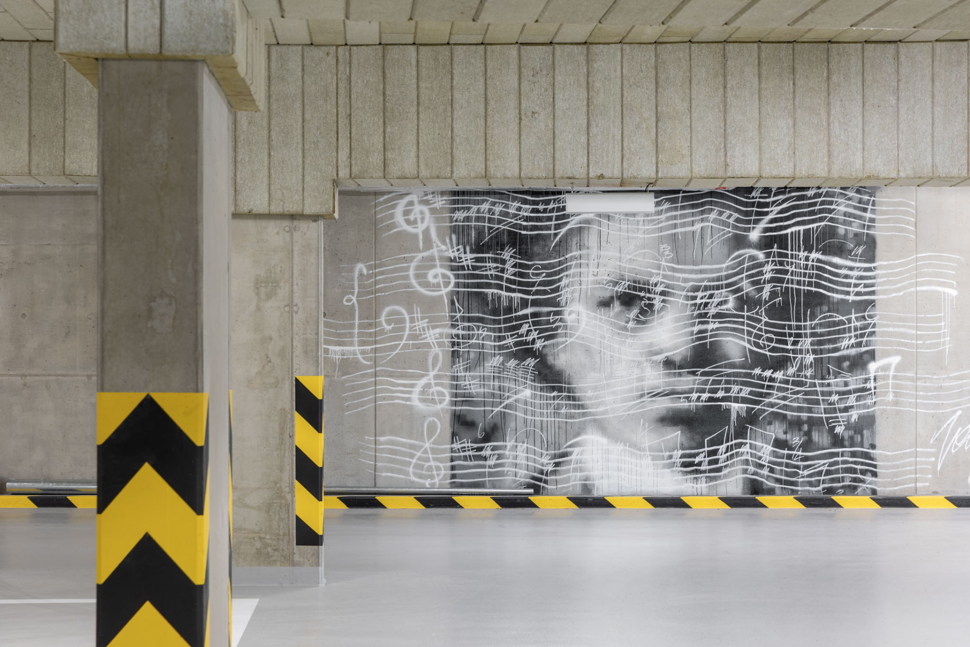 Byla použita také deska Silbonit Giallo, žlutá s povrchovou úpravou Groove. U desek ošetřených touto technologií je povrch přebroušen extrémně hrubým zrnem, přičemž jsou vytvářeny různě hluboké rýhy o maximální hloubce až 1 mm. Tak vznikne zcela výjimečný efekt „kartáčovaného povrchu“ dále umocněný působením světla a stínu na fasádě.