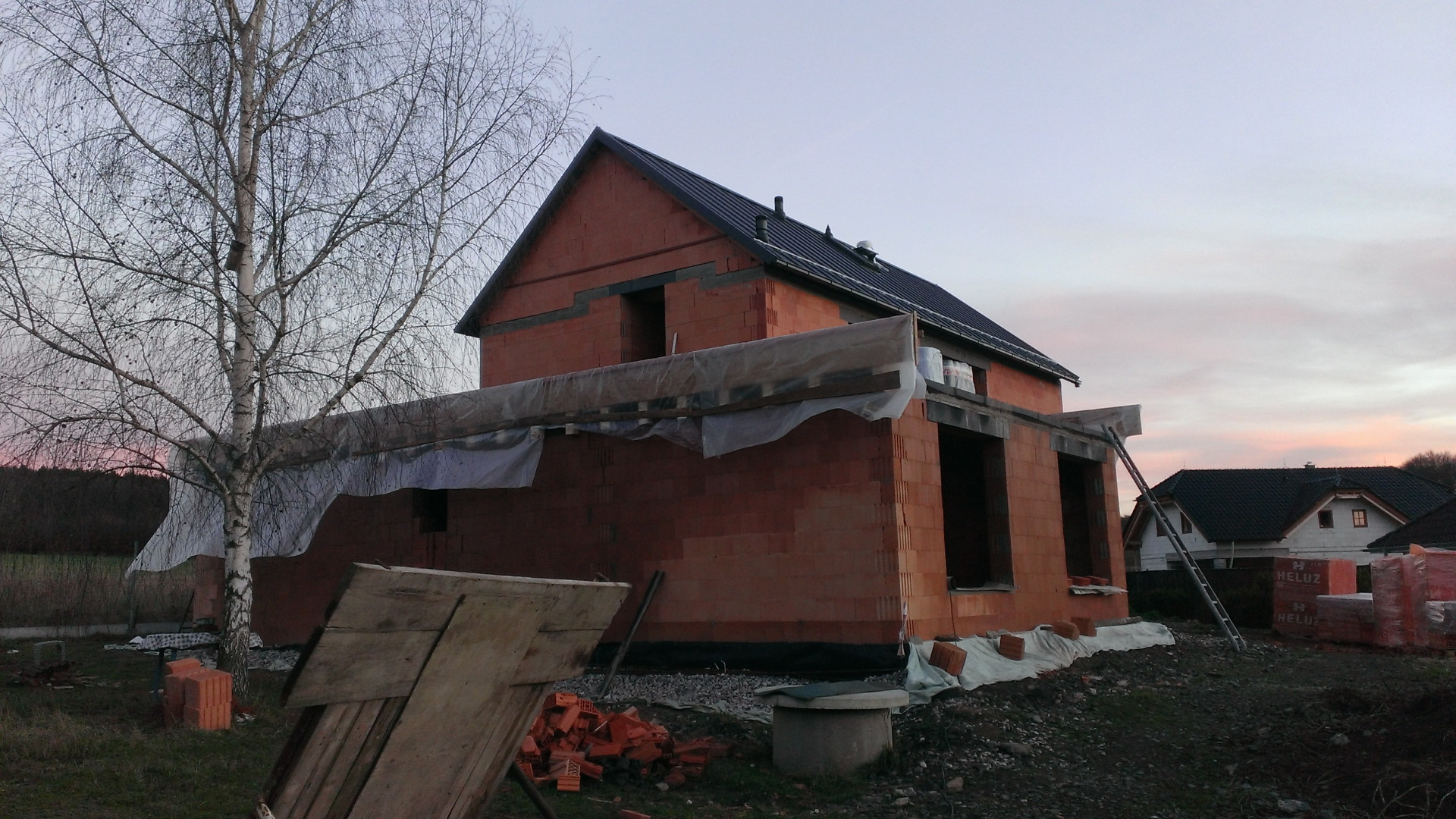 - Konstrukce: Obvodové zdi cihelný systém HELUZ – HELUZ FAMILY 30 broušená, příčky a překlady HELUZ.