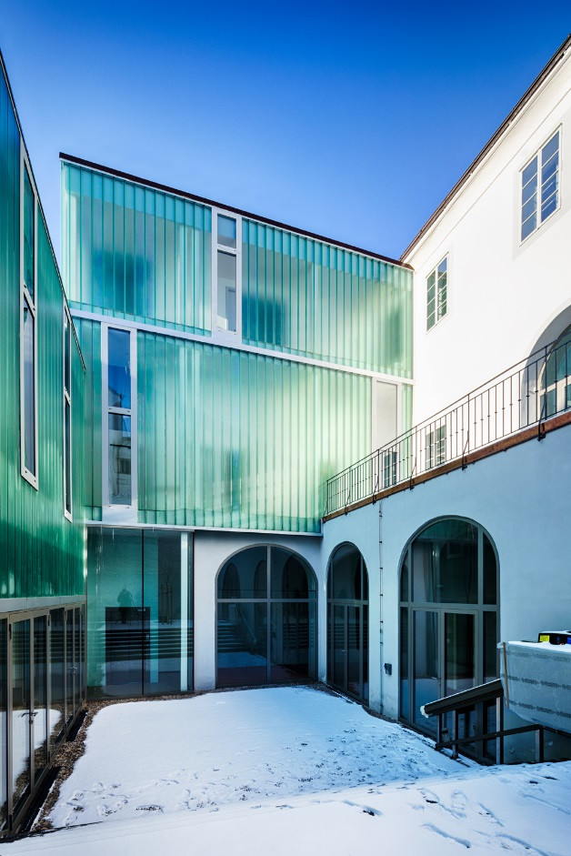 Při pohledu z kolínského Karlova náměstí se tzv. Viegertovský dům, v němž sídlí místní Regionální muzeum, od sousedních budov ničím neliší. Historická budova však v posledních letech prošla komplexní rekonstrukcí, během níž byla k původnímu objemu přidána i nápadná novostavba sloužící jako muzejní depozitář. Památkově chráněný objekt doplnila architektka Irena Hrabincová přístavbou s opláštěním z průsvitného profilovaného skla, které rozehrává nepravidelné uspořádání okenních otvorů.