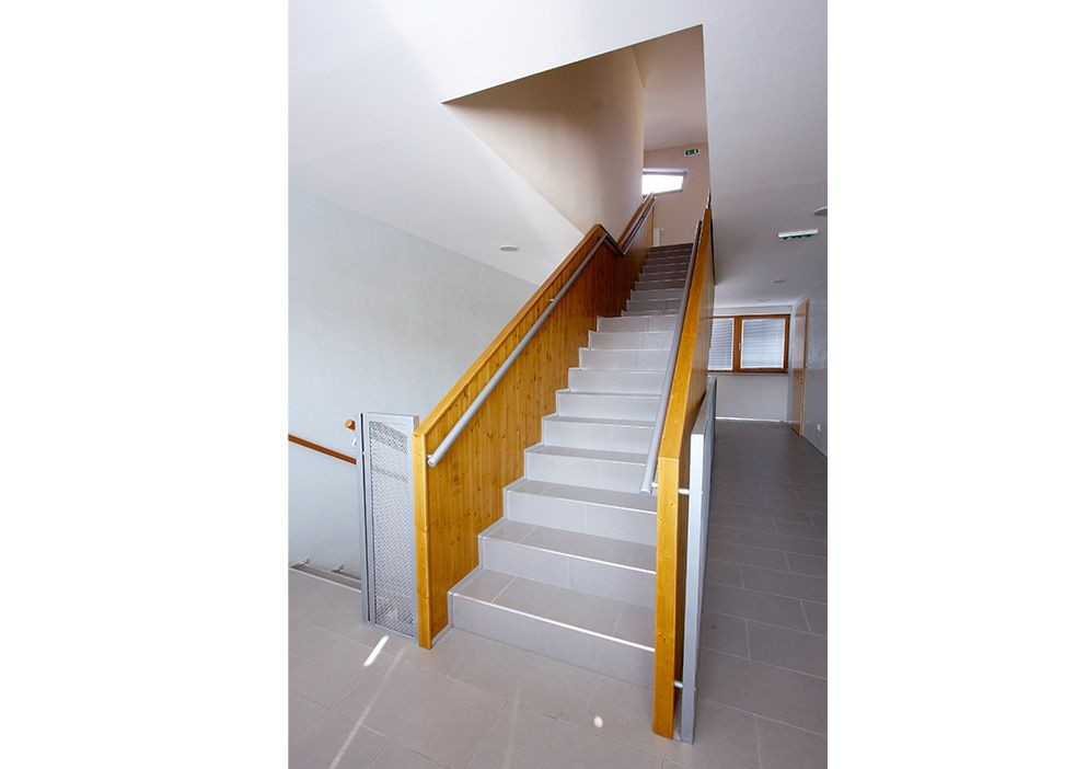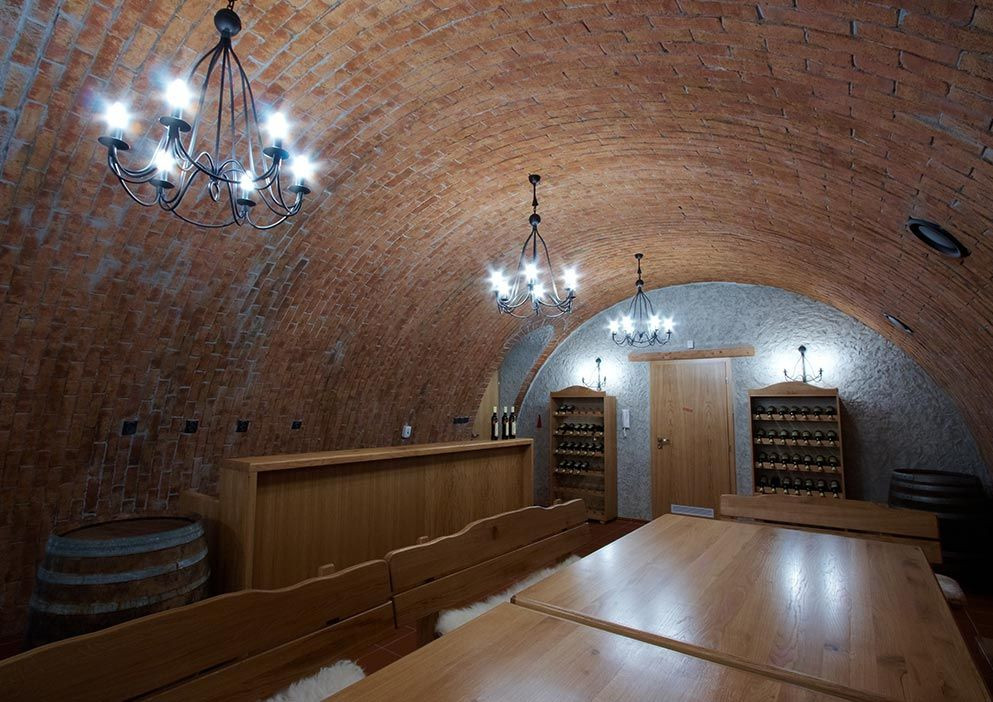 Celkovému objemu budovy autoři ulehčili také tím, že třetí podlaží ustupuje od okraje fasády, což do jisté míry izoluje bytové jednotky od ruchu ulice. Budova je částečně podsklepena a v suterénu najdeme stylovou vinotéku pro 16 osob. Díky svému klenutému cihlovému stropu působí jako staronový sklípek někde na jižní Moravě, takže si obyvatelé mohou dopřát zcela jiný pocit z prostoru v jedné budově. Pokud se tedy podíváme na stavbu jako celek, lze konstatovat, že 1. nadzemní podlaží ulehčuje celé stavbě svou otevřeností do ulice. Tato otevřenost je reprezentována zejména díky proskleným stěnám a do jisté míry i třetím podlažím, resp. dojmem z lehkého materiálu, jímž dřevo v tomto chápání bezesporu je.