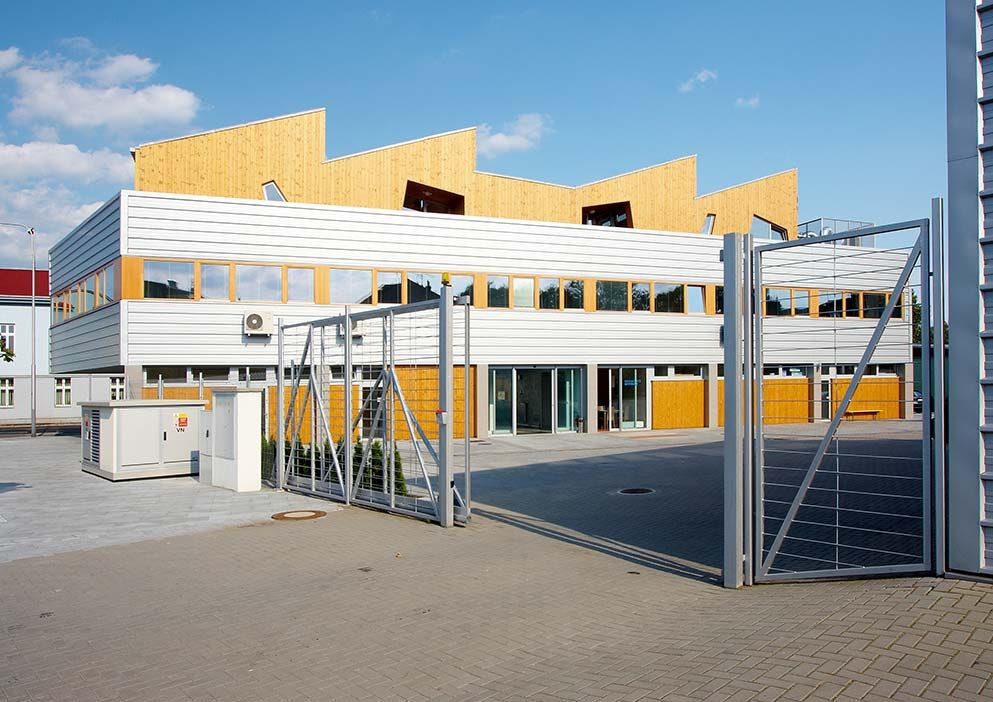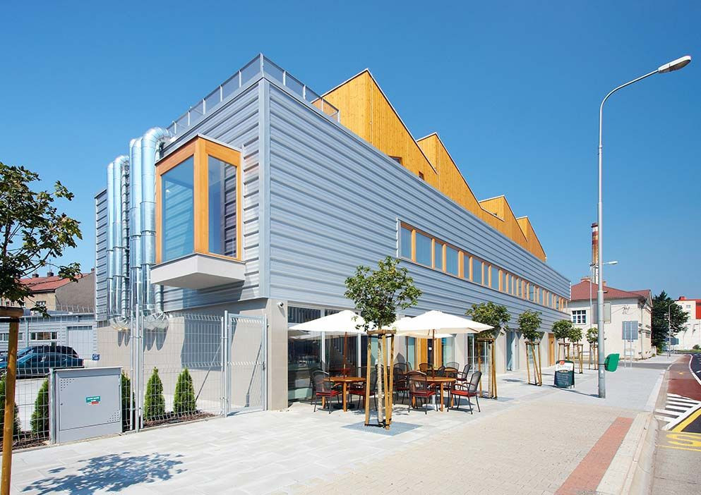 Přestože základní objem stavby vychází z pravidelného obdélníku a tvoří podlouhlý kvádr, stavba je tvarově ozvláštněna ustupujícím třetím podlažím a pilovou střechou s přiznanou technologií vzduchotechniky. Rozmanité materiály a různé formy zasklení definují jednotlivá podlaží. Stavba je architektonicky čistá, bez zbytečných kudrlinek. Není provokativní, přesto je svými materiály výrazná a celkovým ztvárněním utkví v paměti.