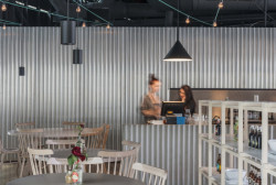 Tento krásně jednoduchý prostor vznikl ze spolupráce dvou architektonických kanceláří – GutGut a GRAU. Byl to už třetí provoz, který společně pro značku restaurace vytvořili. „Restaurace v nákupních centrech jsou si často navzájem podobné, a my jsme chtěli vytvořit místo, které si lidé zapamatují. Bistro SOHO jsme proměnili tak, aby v něm nebyla typická atmosféra stravování v nákupním centru, ale aby představovalo klidnější prostředí,“ říká Andrej Olah ze studia GRAU. Podívejte se, jak profily Ruukki přispěly k proměně tohoto místa.