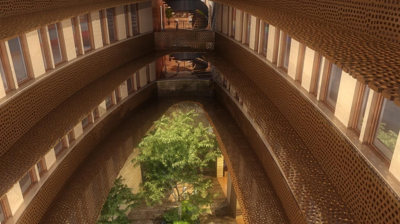 V konstrukci jsou použity tradiční arabské stavební principy, prvky a charakteristiky. Všechny tyto prvky tvoří základ pro ekologicky inteligentní a současný výraz budovy, která má zároveň rozpoznatelné tradiční charakteristiky. Funkce, struktura, materiály a forma jsou vzájemně propojené, aby mohly vytvořit co možná nejvyšší uživatelský komfort s minimálním využitím zdrojů a nejnižšími náklady.