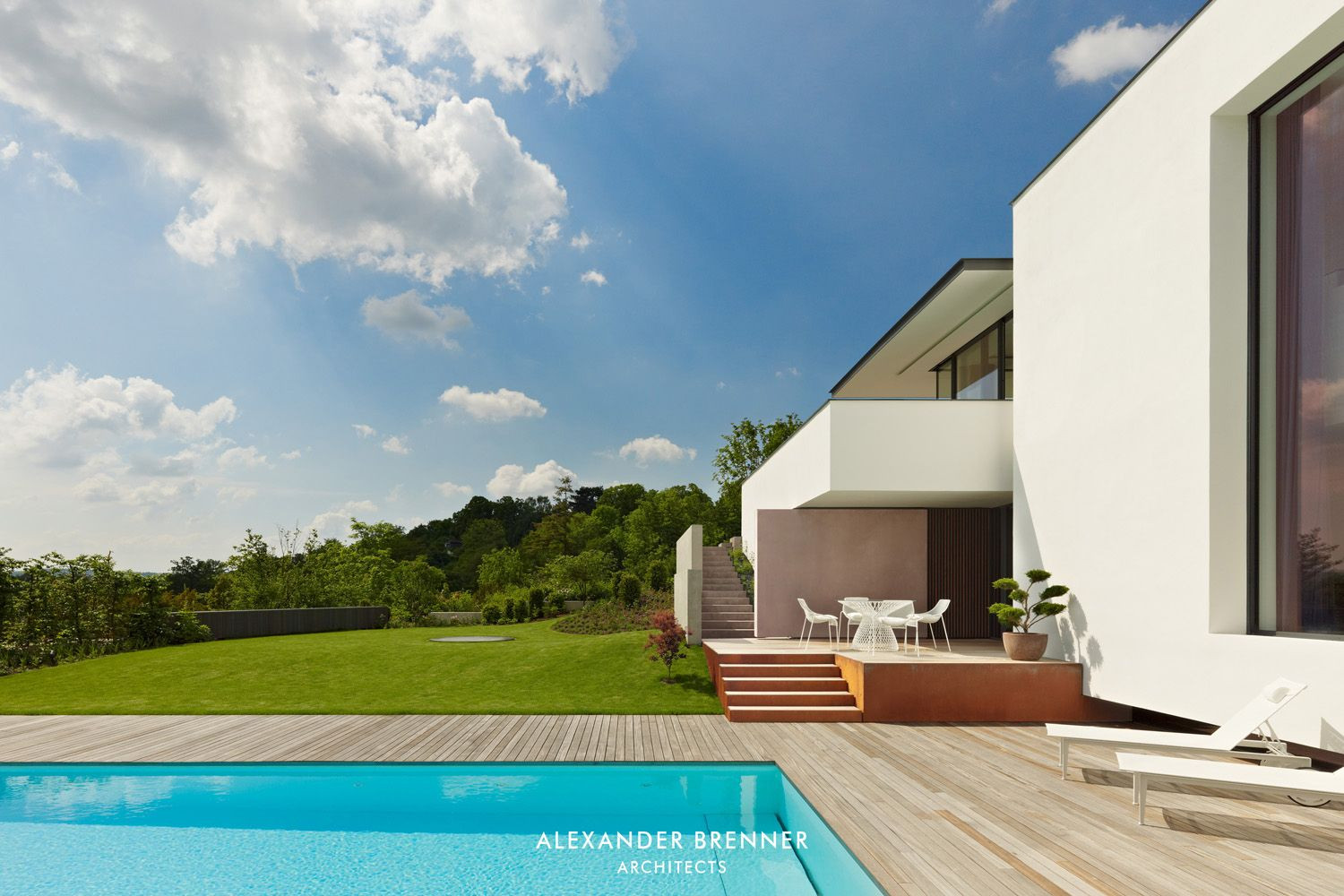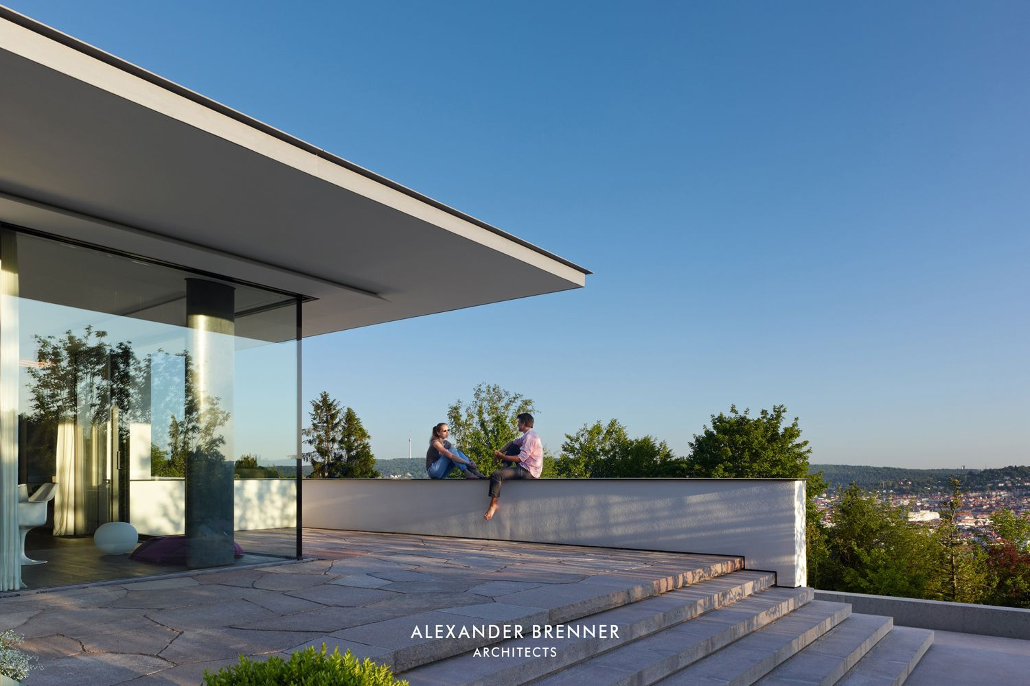 Německý architekt Alexander Brenner navrhl pro umělecky založený pár vilu s výhledem a bazénem. Jednoduché bílé linie, specifické členění formy a rozostřené přechody mezi interiérem a exteriérem navazují na tradici architektury ve Stuttgartu, města, kde Le Corbusier uskutečnil svůj sen.