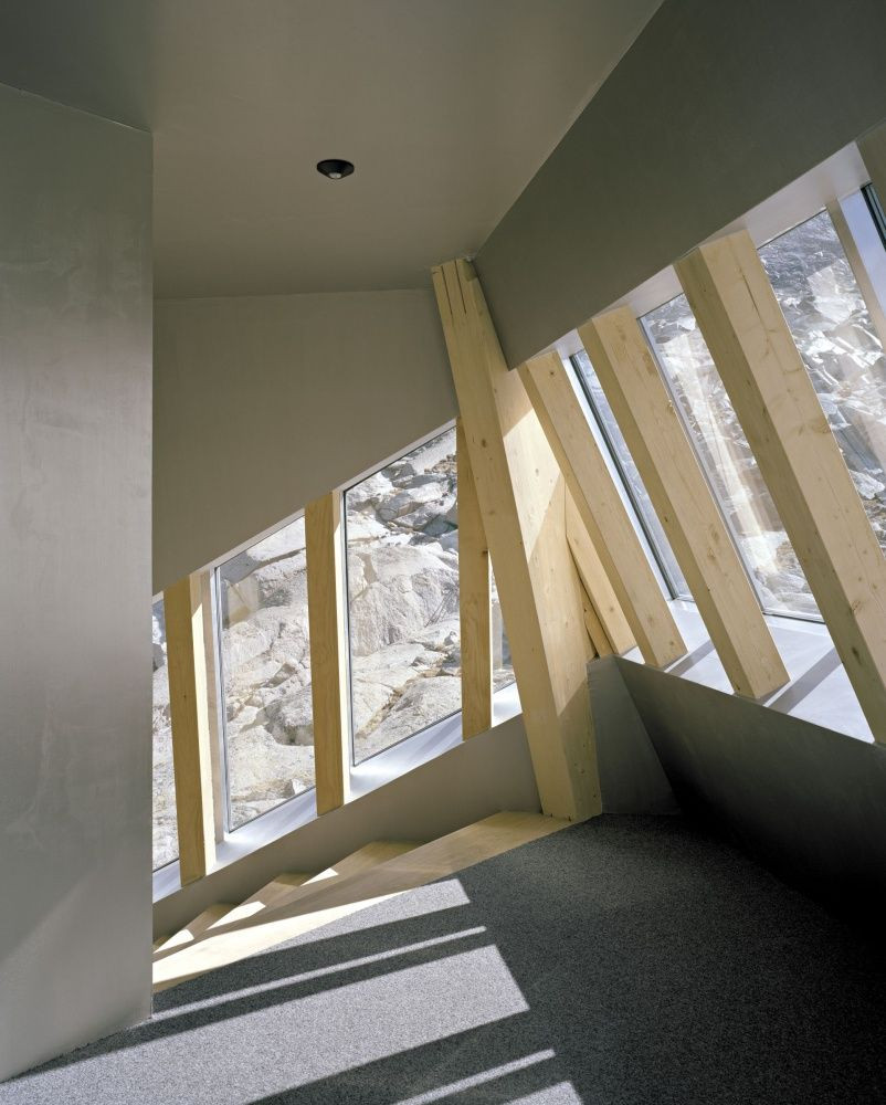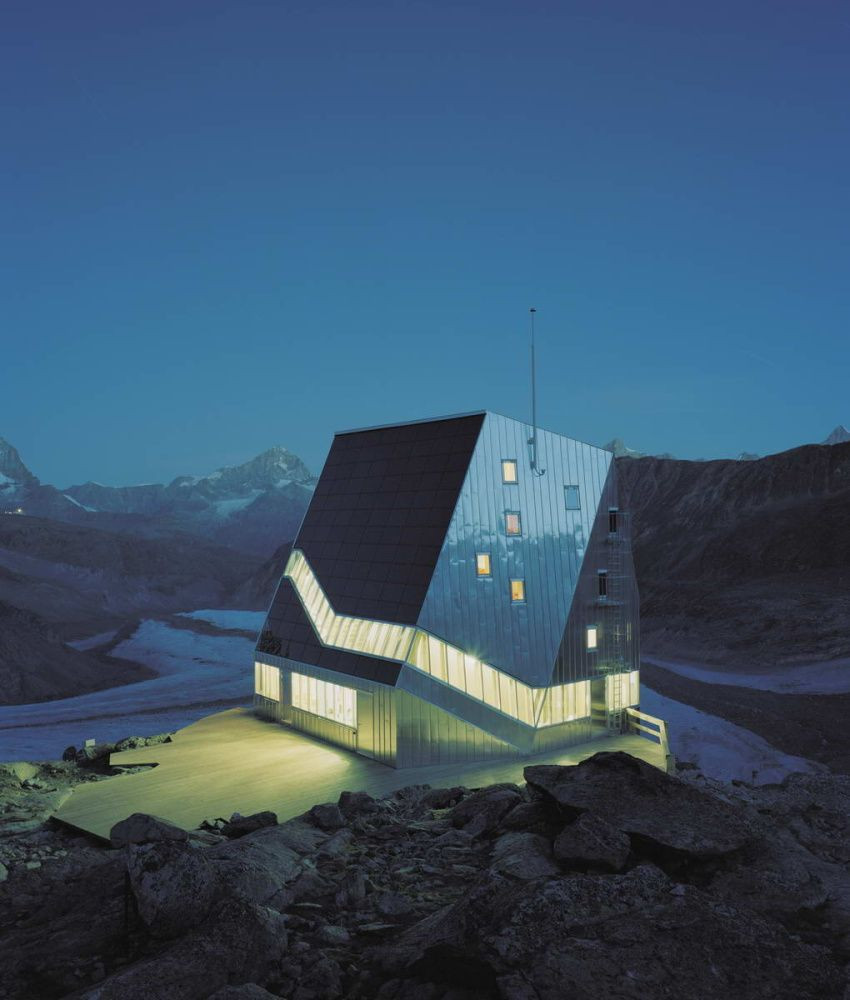 Chata přezdívaná “horský křišťál“ vznikala pouhých 5 měsíců a dnes zdobí ledovcovou oblast švýcarského kantonu Wallis/Valais. Pětipodlažní dřevěný objekt s jedinečným výhledem na panorama masivu Monte Rosa, Gornergrat a Matterhorn stojí v unikátní krajině v nadmořské výšce 2 883 metrů. Připomíná torzo skaliska uprostřed věčného ledu a ukazuje cestu horolezcům.