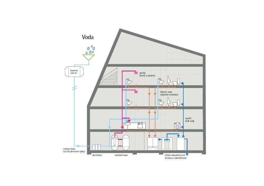 Jižní fasáda "horského křišťálu" je osazena fotovoltaickými panely, které budově poskytují nezbytnou provozní energii, a solárními kolektory pro ohřev vody. Pasivní solární energii získává chata kombinací všech prosklených prvků fasády. Tady zaujme hlavně spirálovitý skleněný pás, který sleduje sluneční paprsky a vede teplo dovnitř chaty. Díky použitým střešním oknům VELUX s nízkoenergetickým trojsklem 65 se součinitelem prostupu tepla Uskla = 0,5 W/m2K a součinitelem prostupu tepelného slunečního záření g = 0,46 dochází k eliminaci tepelných ztrát, což má pozitivní vliv na celkovou energetickou bilanci stavby. Vzhledem k náročnosti projektu se všechna střešní okna VELUX se zvýšenou třídou průvzdušnosti montovala jako prefabrikované díly, složené z okna a zaizolovaného ostění. Vždyť musí perfektně fungovat v teplotách od - 25 °C do + 25 °C a při rychlosti větru až 240 km/h.