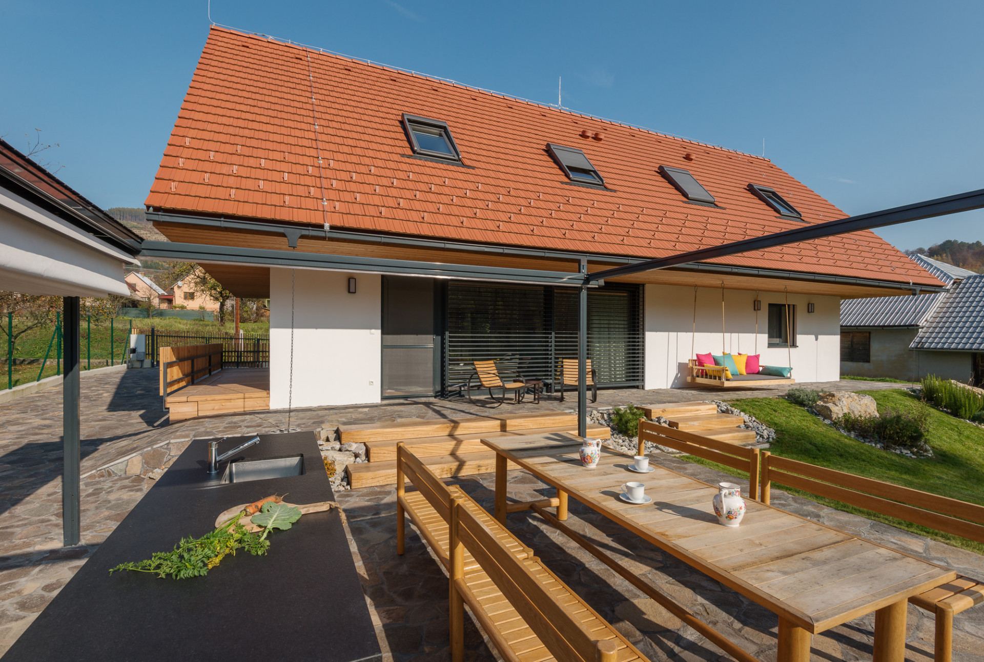 U česko-slovenských hranic v oblasti Bílých Karpat navrhlo slovenské studio Compass architekti dům, který kolemjdoucí nepřehlédnou zejména díky její výrazné střeše. Podobu stavby navrhli architekti s ohledem na místní stavební tradice, kterým se přizpůsobili i po materiálové stránce. Důležitým požadavkem majitelů bylo také přímé propojení interiéru se zahradou.