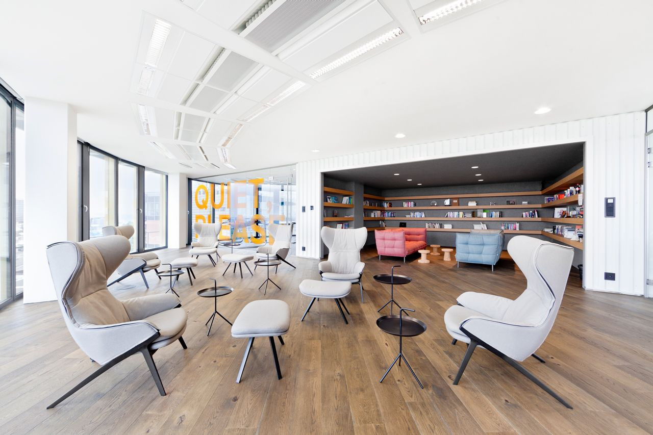 Zajímavým řešením problému s otevřeným prostorem – openspacem je tzv. ‚mancave‘. To jsou polootevřené kanceláře, které jsou na každém patře vyvedeny v různých materiálech, jako jsou dřevo, ocel, cementové desky (cetris), tahokov, či korek.
