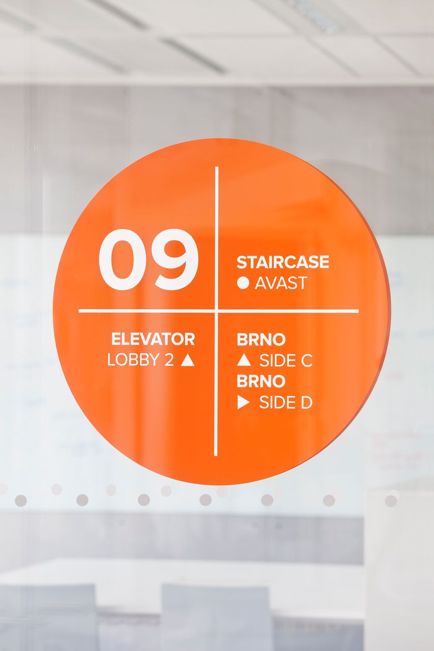 Autoři se tak do interiérů snažili zakomponovat uvolněnou atmosféru, která v Avastu panuje a zároveň použitím industriálních materiálů poukázat na IT původ společnosti a technologické zázemí. Proto se duo VRTIŠKA • ŽÁK rozhodlo umístit do poměrně úzkého půdorysu budovy jádro, které se rozkládá na podélné ose a je v něm soustředěna většina prostor, které nejsou pracovišti (jednací místnosti, telefonní budky, soukromé pracovní kabiny, tiskové koutky, apod.).