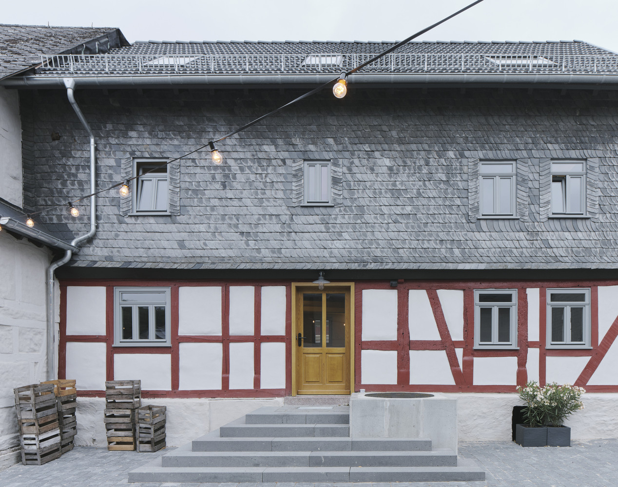 Německý architekt zrekonstruoval zchátralý dvůr z 18. století sestávající ze čtyř budov – obytného domu, vepřína, stodoly a remízy, která v minulosti fungovala jako vozovna a majitel v ní uchovával zemědělské stroje a kočáry. Budovy nově slouží jako příjemné místo pro pořádání akcí.