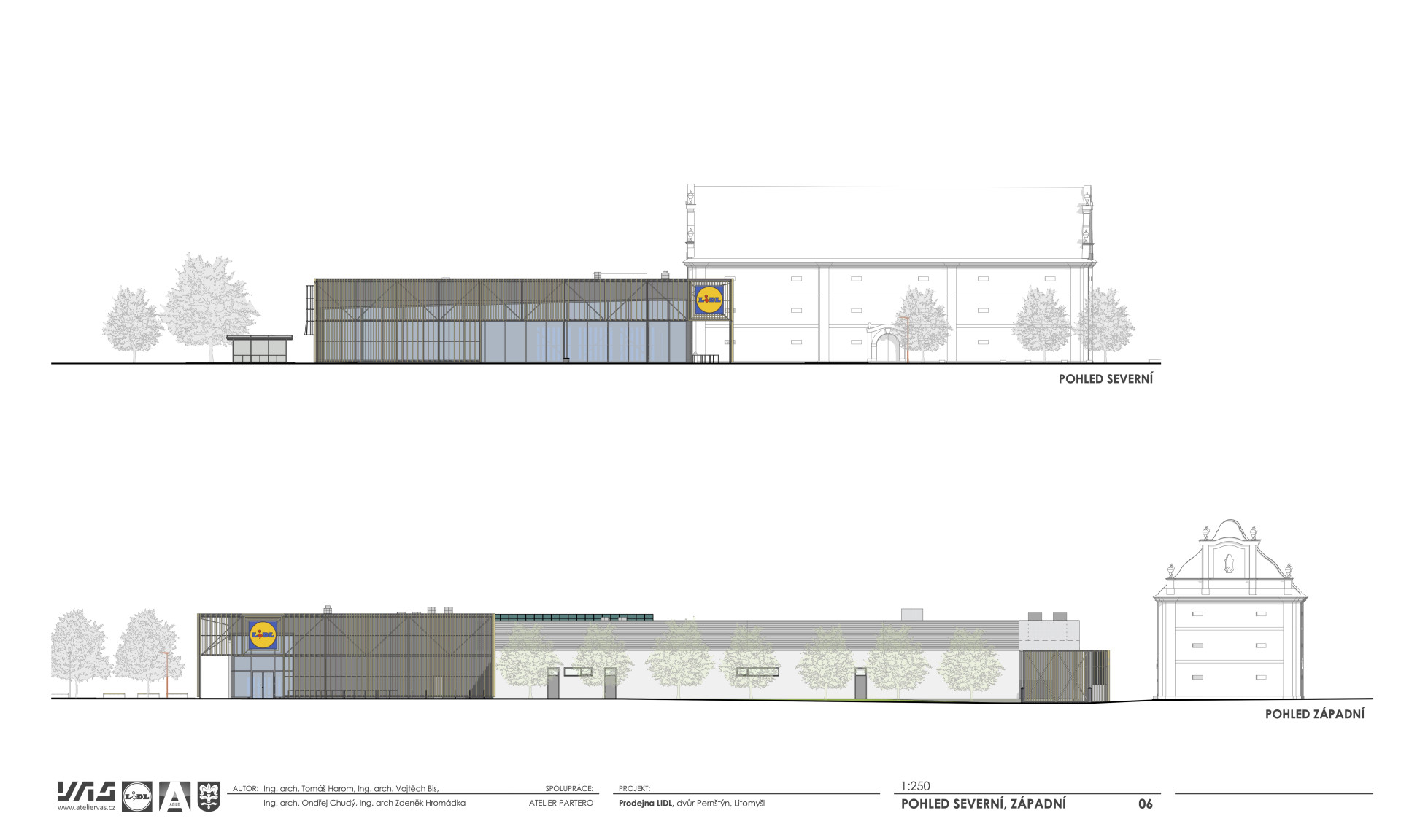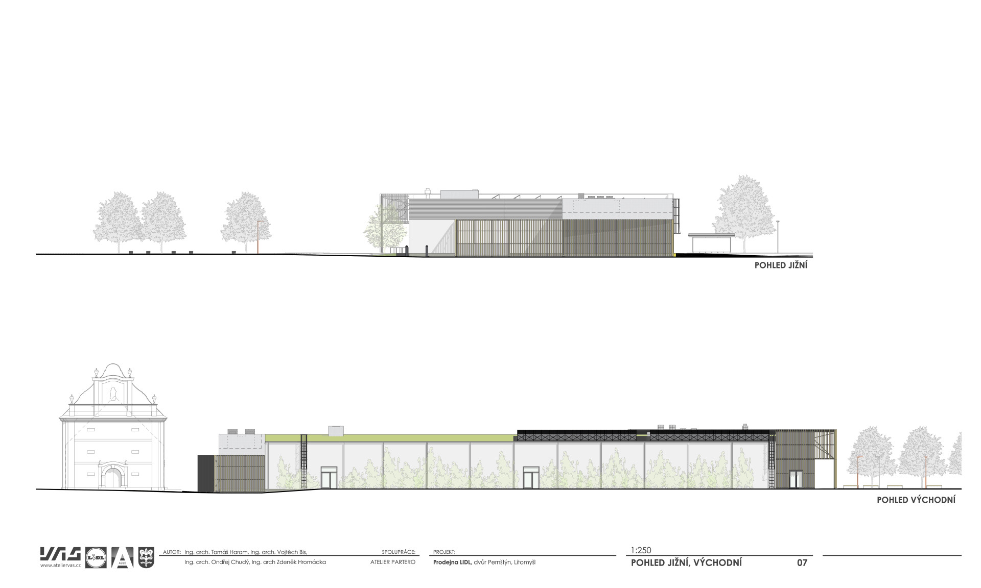 Proto byla uspořádána vyzvaná architektonická soutěž také pro zpracování vnější podoby a okolí nového objektu řetězce Lidl, který loni vyrostl v historické části Pernštýn vedle památkově chráněné barokní sýpky – ta však na svou záchranu a nové využijí stále čeká. Vítězný návrh od studia VAS se tak soustředil na kompoziční a materiálové pojetí fasády a kvalitní řešení parteru.