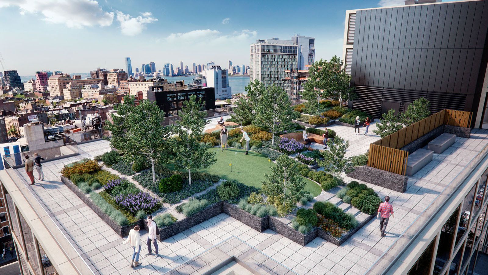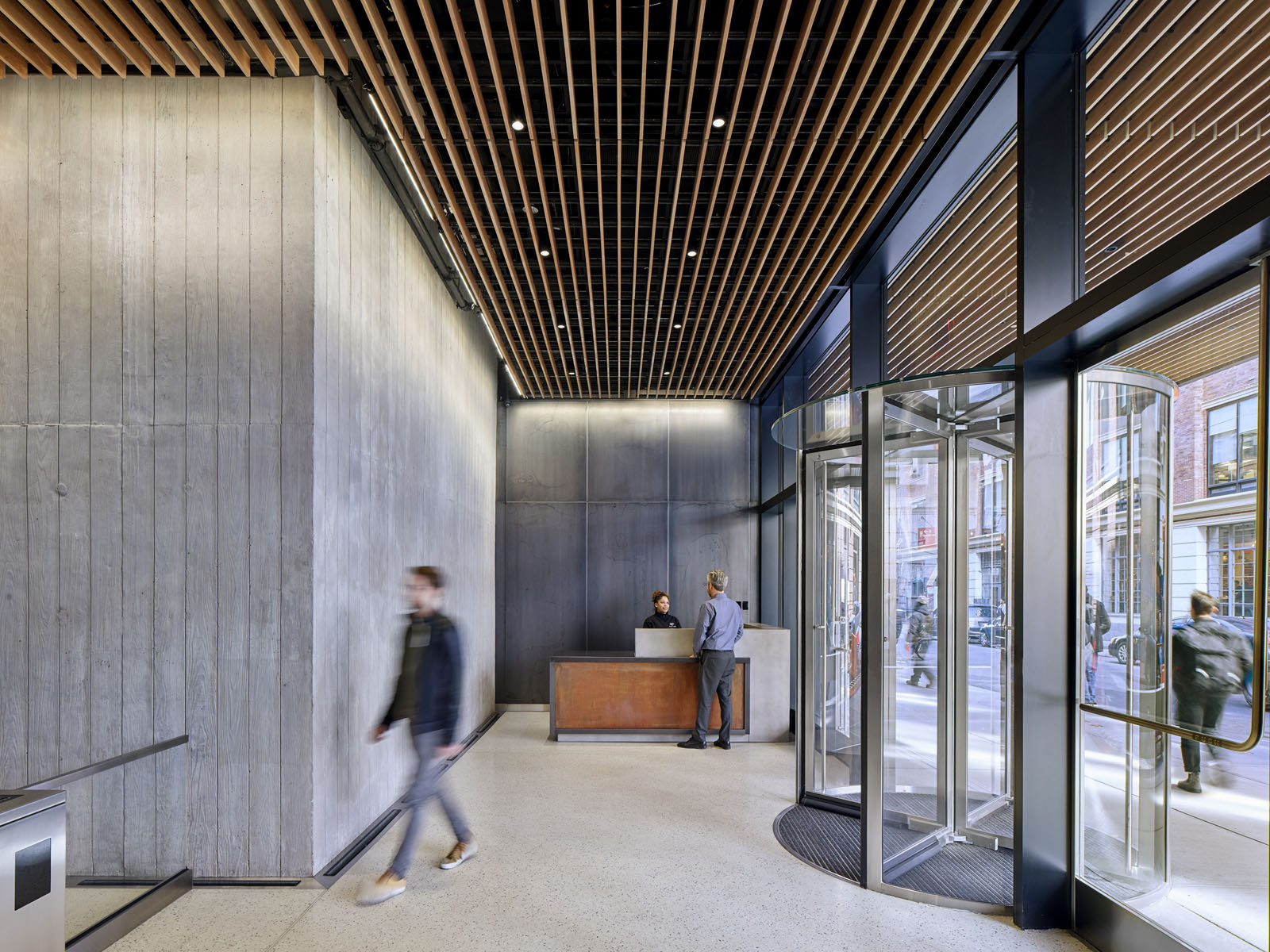 Řešení dispozice budovy reaguje na specifickou tržní poptávku v této čtvrti New Yorku, kde se kanceláře často nacházejí v bývalých průmyslových objektech. Charakteristickým rysem těchto velkých výrobních prostor je, že na rozdíl od moderních kancelářských věží, které běžně nalezneme na Manhattanu, poskytují velkoryse otevřené prostory s vysokými světlými výškami. Návrh kancelářské budovy od kanceláře Rafael Viñoly Architects tak odkazuje na původní povahu industriálních prostor přeměněných v kanceláře. Snahou autorů bylo dosáhnout typické atmosféry pomocí vysokých stropů a velkých oken s dostatkem denního světla.
