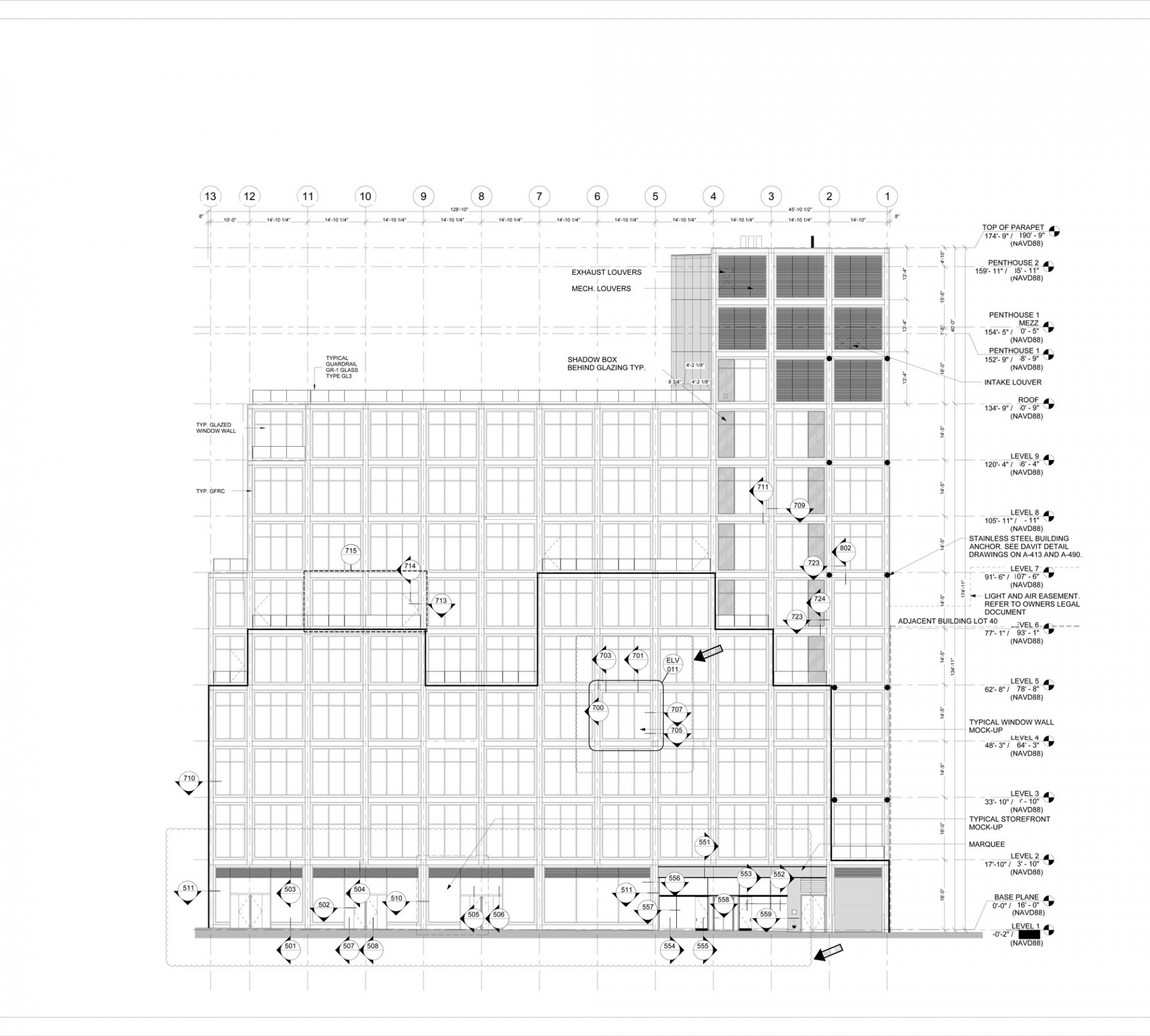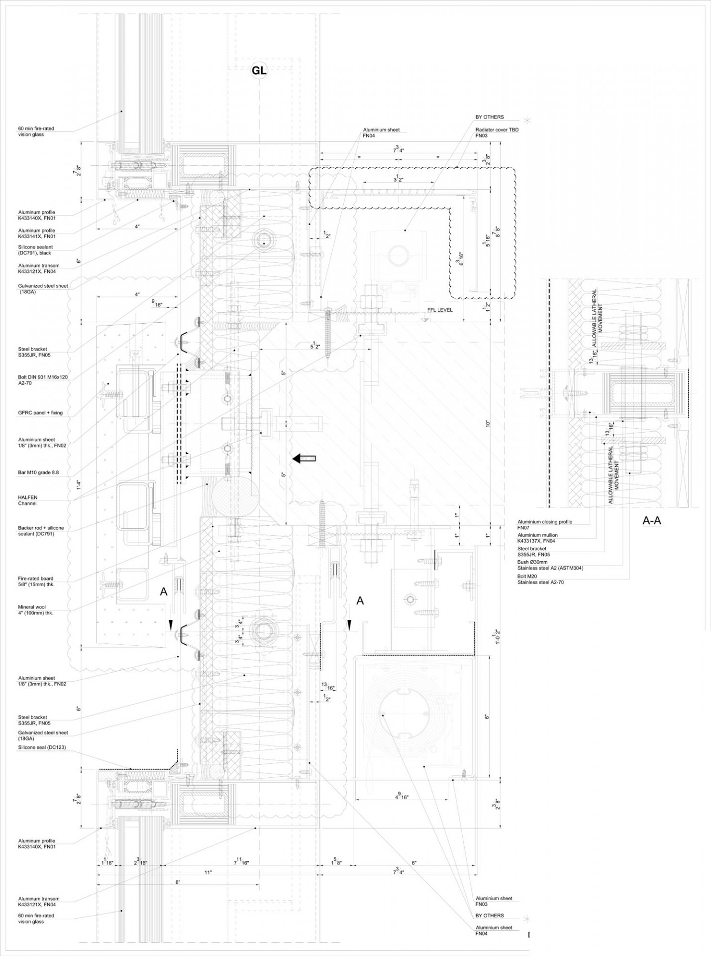 Fasádu objektu tvoří hliníkový sloupkovo-příčkový fasádní systém MB-SR60NY společnosti Aluprof. Budova 61 Ninth Avenue je dokonce prvním projektem, kde byl tento systém použit. Konstrukční řešení fasády umožňuje esteticky kombinovat prosklené stěny s plnými výplněmi z betonových prefabrikovaných kazet v bílé barvě, které vytvářejí výrazné rámy kolem prosklení. Tepelný komfort v interiéru zajišťují výplně z tepelně izolačního dvojskla. Pro splnění požadovaných norem byli architekti nuceni použít v některých částech budovy protipožární systém prosklení. Zvolený systém je řešen tak, že vizuálně není rozpoznatelný rozdíl mezi standardní a protipožární konstrukcí, takže zůstává zachován jednotný architektonický koncept fasády se současným dodržením všech bezpečnostních požadavků.