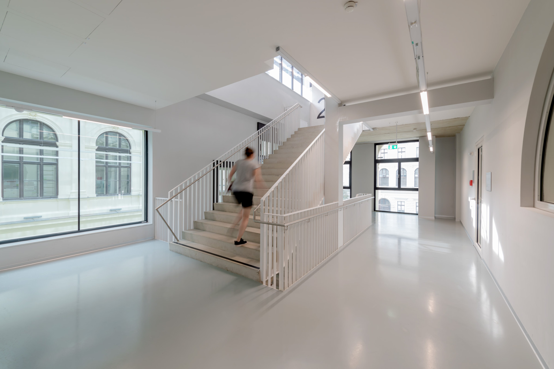 V novém Průvodci plánováním budov pro školství se seznámíte také s novou integrovanou Grace Hopper Gesamtschule (jeden z typů německých středních škol) pro tvůrčí a digitální vzdělávání v německém Teltowě. Odborní projektanti se ve škole spolu s realizační firmou rozhodli použít místo linolea lité podlahy firmy Sto, které svými vlastnostmi podporují celkovou koncepci otevřených prostor pro kreativní výuku. Důvod jejich volby byl prostý: lité podlahy StoFloor Comfort Elastic nabídly autorům a řemeslníkům, ve srovnání s vinylem nebo dlažbou, mnoho výhod: vytvořily hladký bezešvý povrch s vysokou rovinatostí a pevností, který odpovídal charakteru školy, navíc se daly rychle instalovat, předností byla i jejich nízká hořlavost.