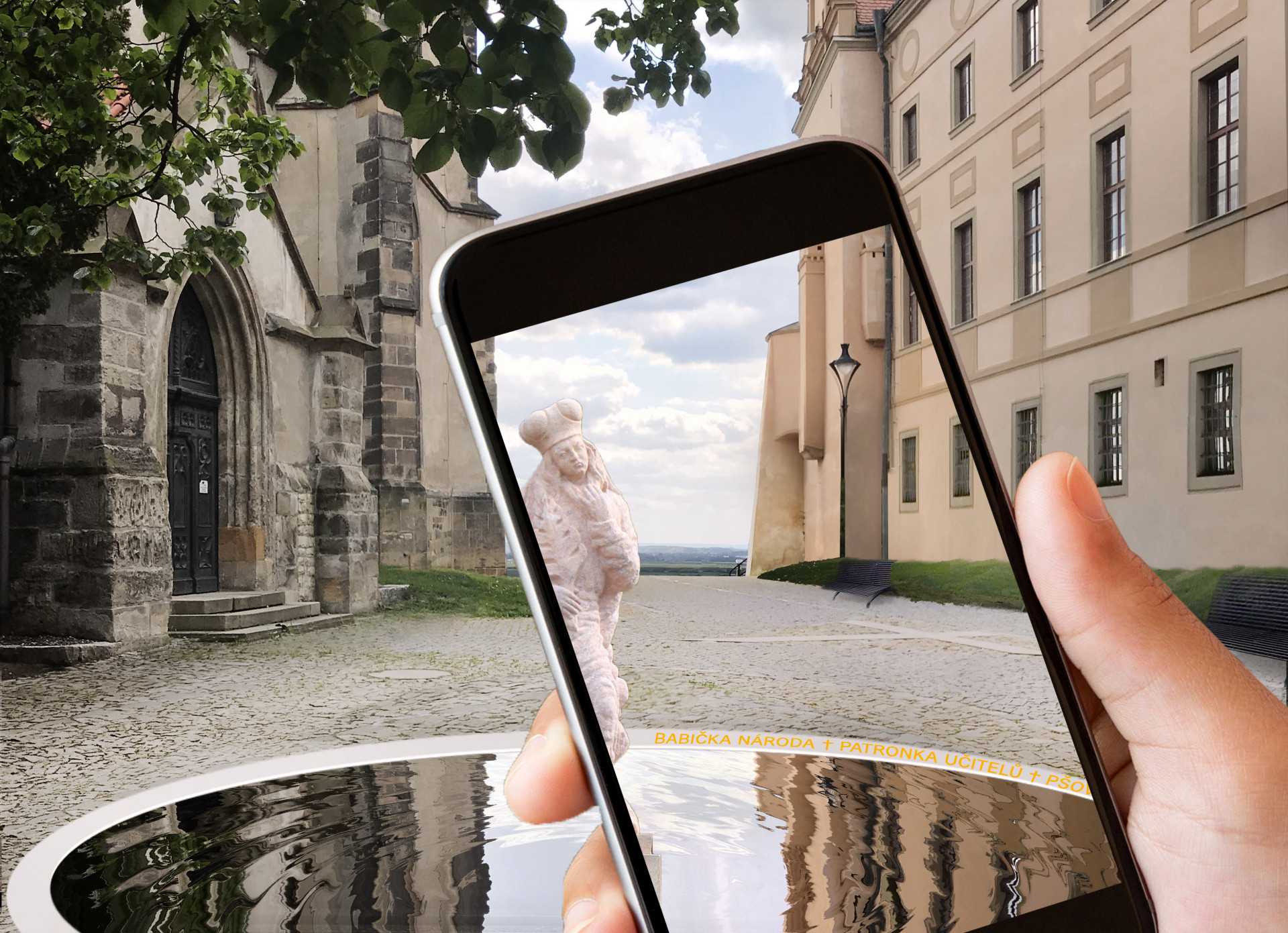 Instalace vyzývající k interakci. Rozšířená realita představí plánovanou sochu sv. Ludmily v Mělníku