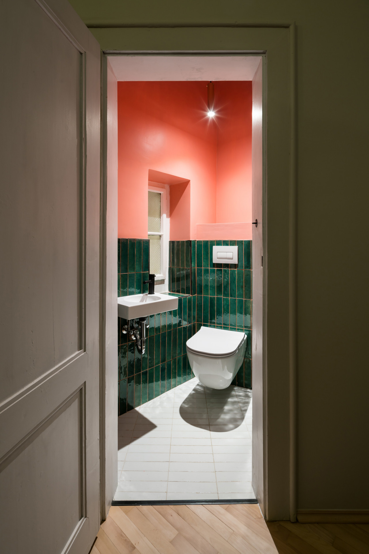 Italské studio alepreda architecture vdechlo bytu na Praze 6 hravost založenou na rafinovaných vložených prvcích. Hlavním úkolem architektů bylo pozměnit nevhodnou dispozici bytu, ve svém návrhu proto pracovali s vloženými vestavbami, které definovaly nové prostory a svou geometrickou stupňovitou strukturou zároveň interiér oživily. Neobvykle tvarované vestavby architekti zvolili jednak z estetického, ale i praktického hlediska - stupně se dají používat k odkládání věcí nebo jako police pro vystavování různých dekorativních předmětů. Motiv geometrického odstupňování prostupuje celým bytem skrze sestavy barevných skříněk až po hravý rytmus obkladů v koupelnách.