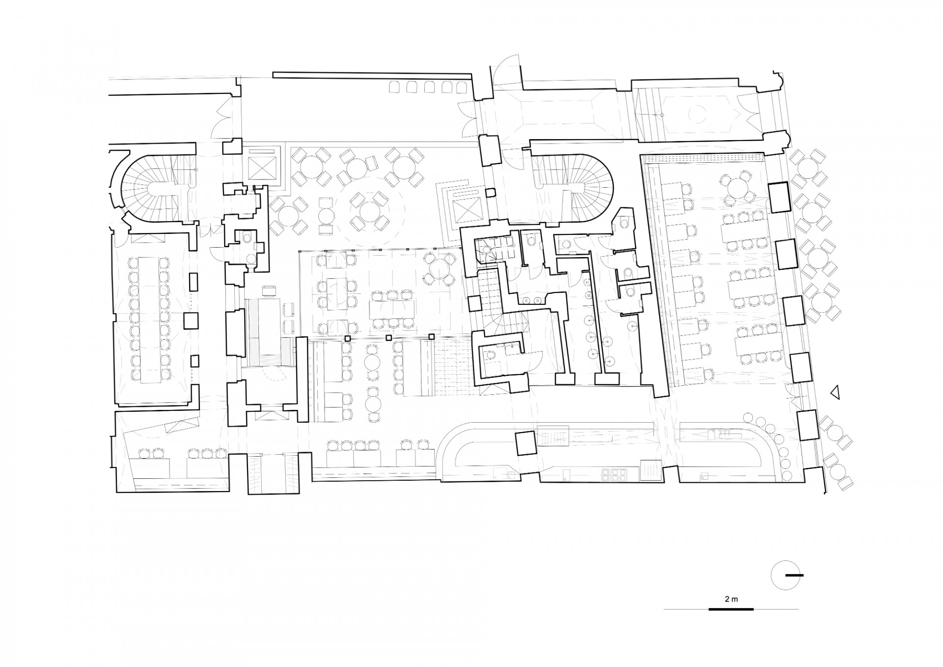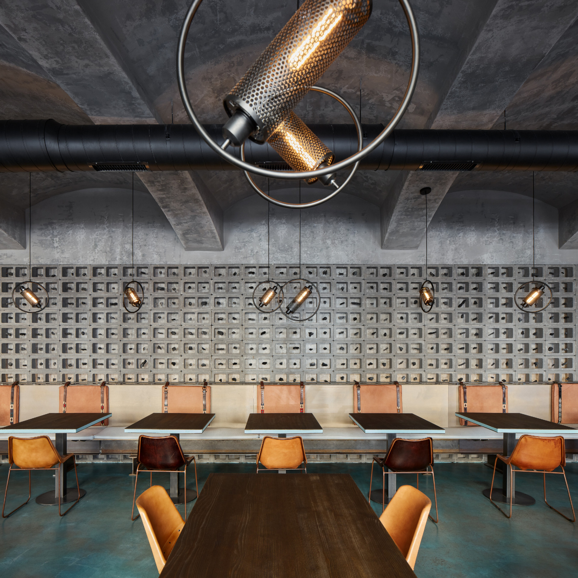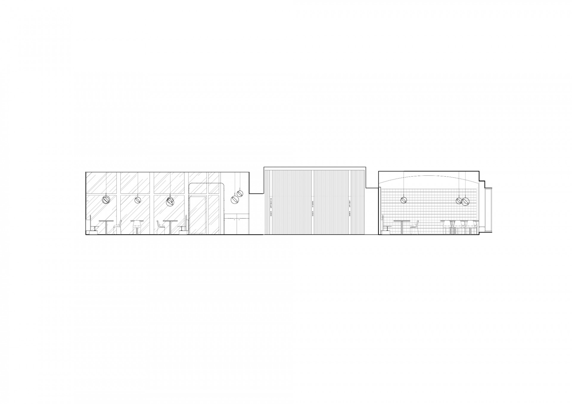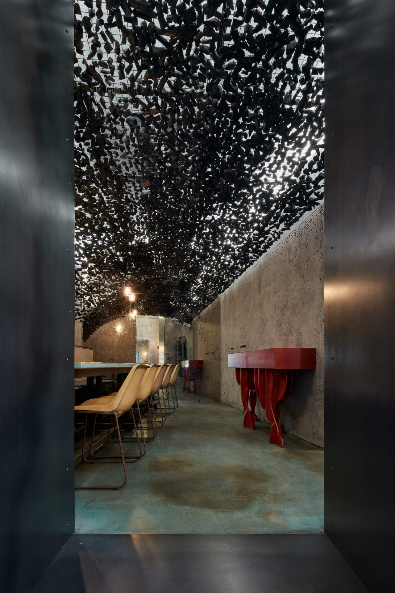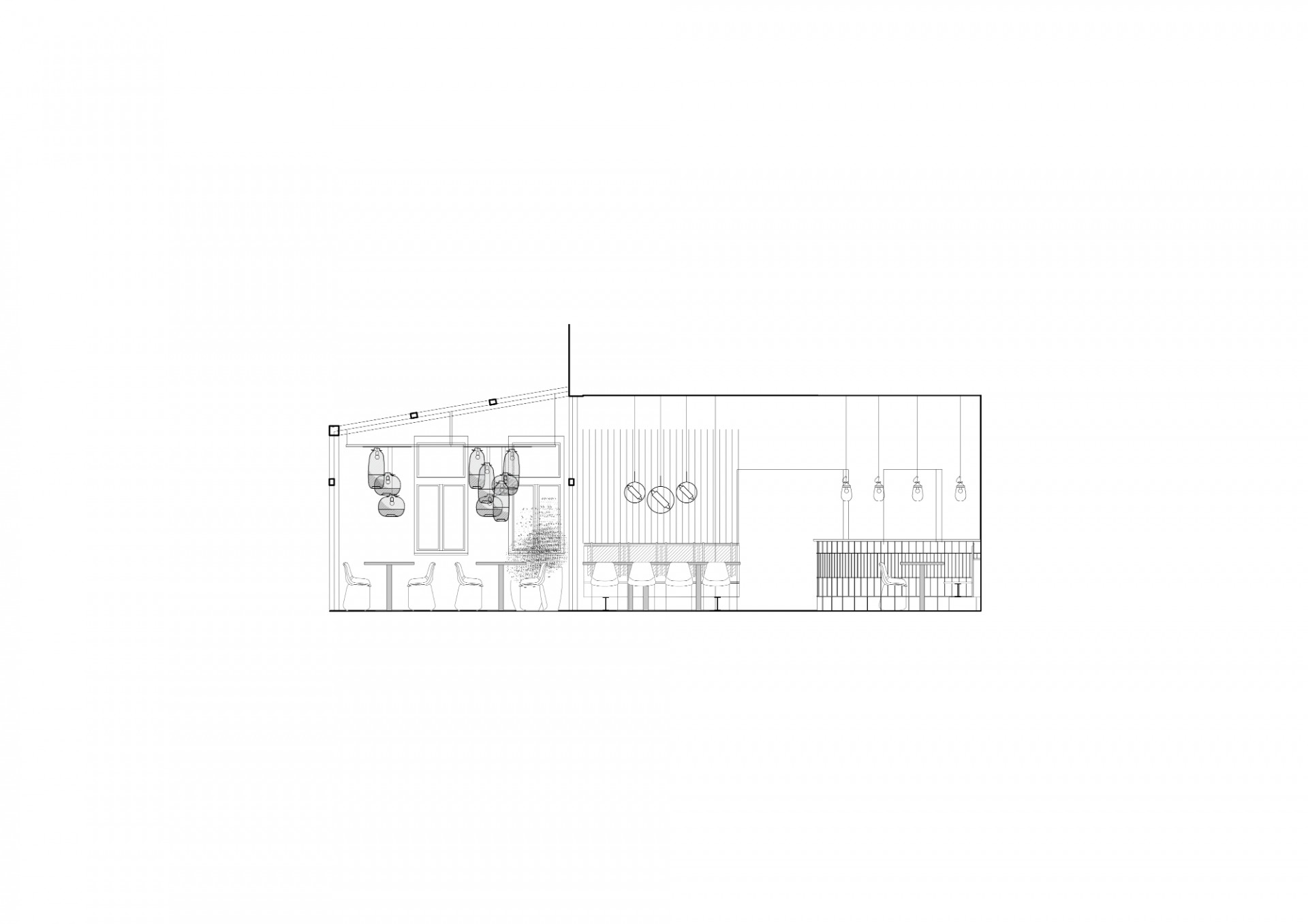 Gran Fierro, Formafatal / Dagmar Štěpánová, Iveta Tesařová, podélný řez - pohled na bar a otevřenou kuchyni