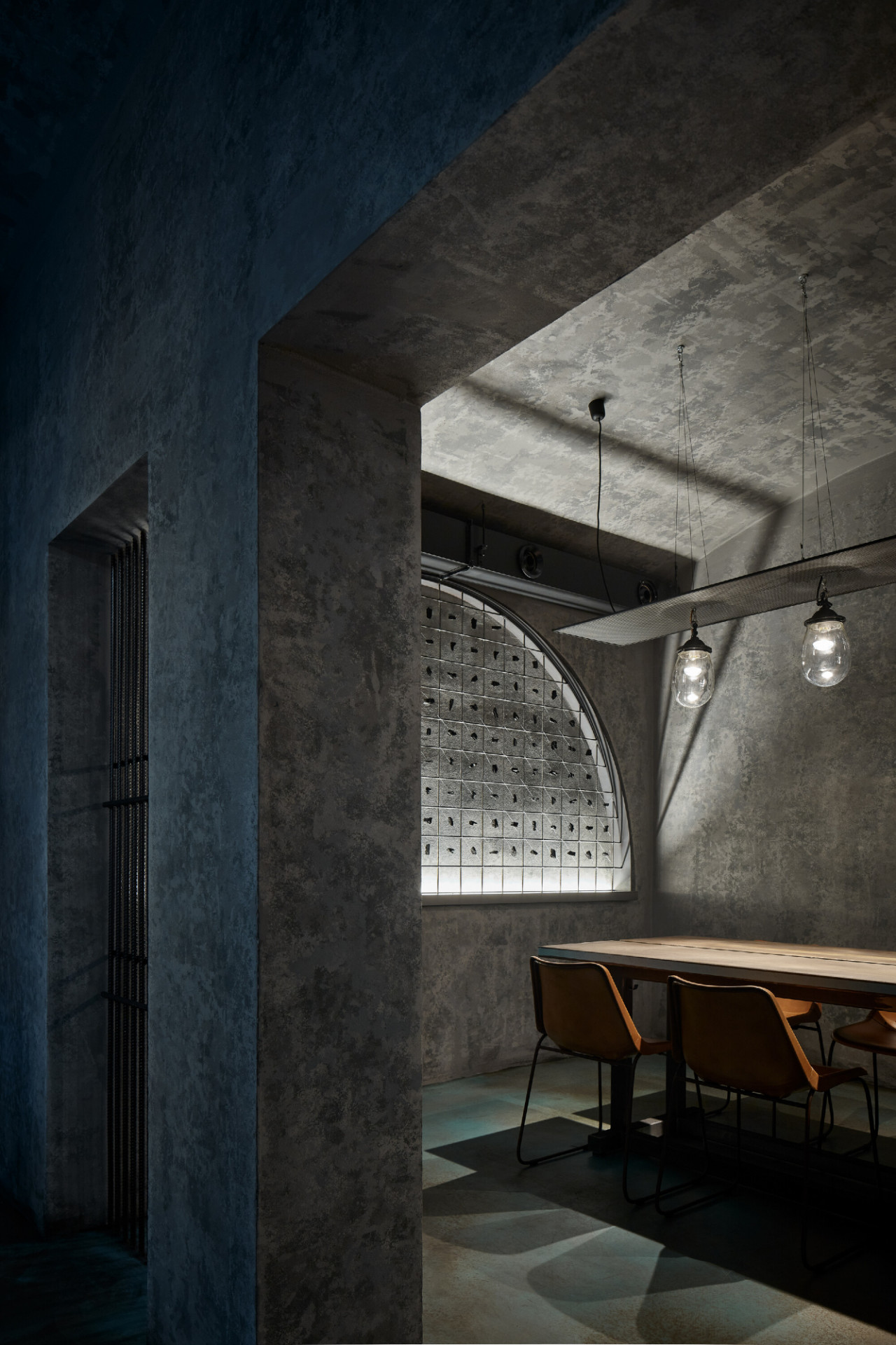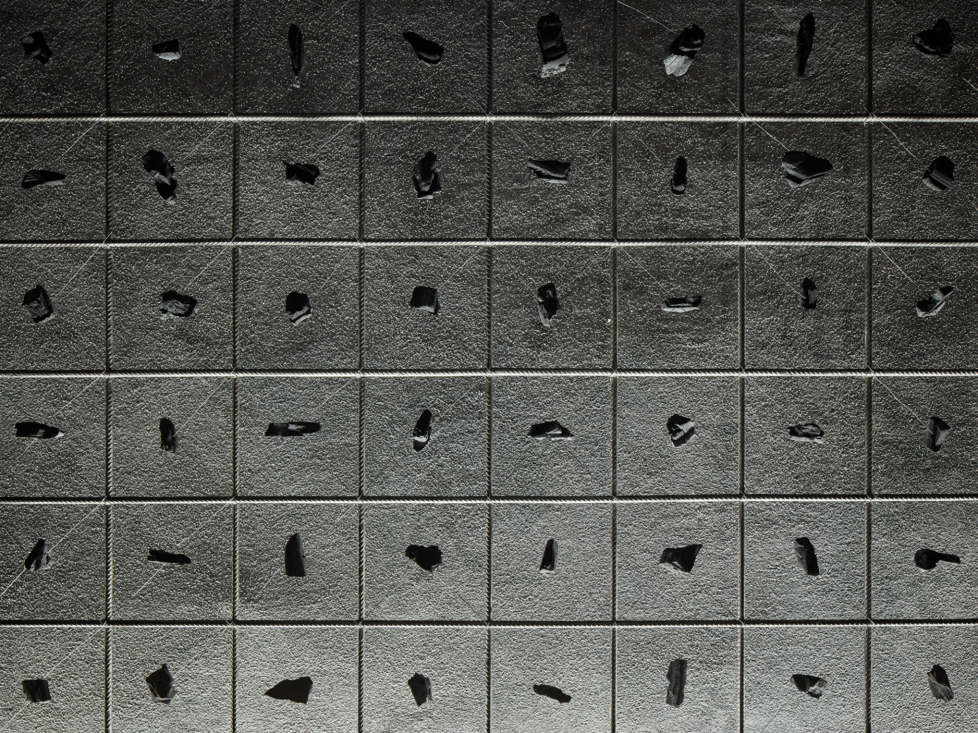 Gran Fierro, Formafatal / Dagmar Štěpánová, Iveta Tesařová, podélný řez - vstupní místnost, pohled na stěnu z betonových tvarovek
