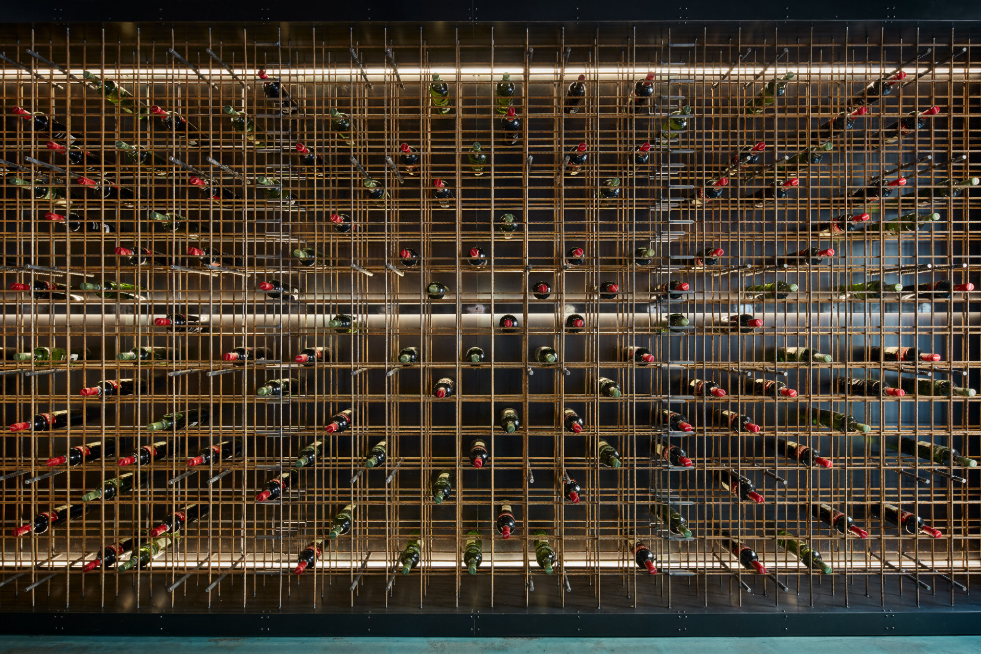 Gran Fierro, Formafatal / Dagmar Štěpánová, Iveta Tesařová, podélný řez - pohled na vinotéku, wc dveře v obkladu a zimní zahradu