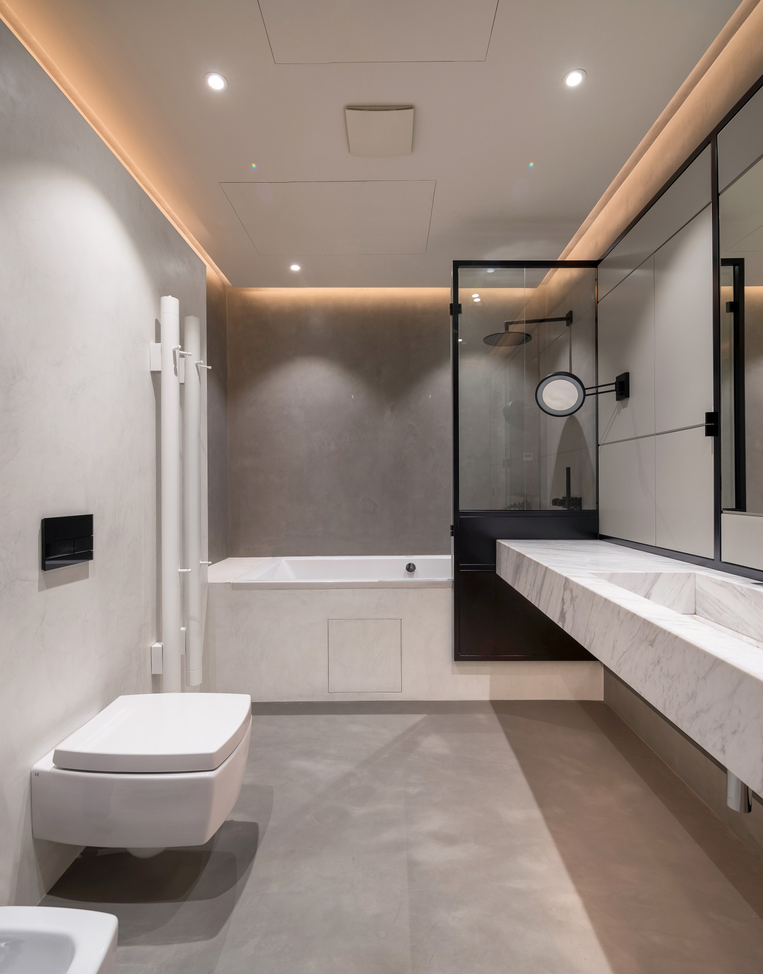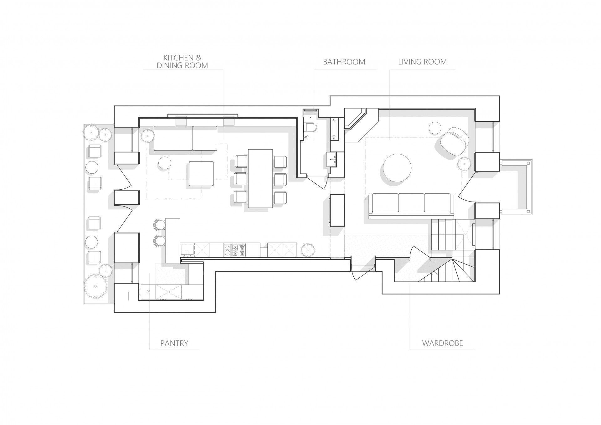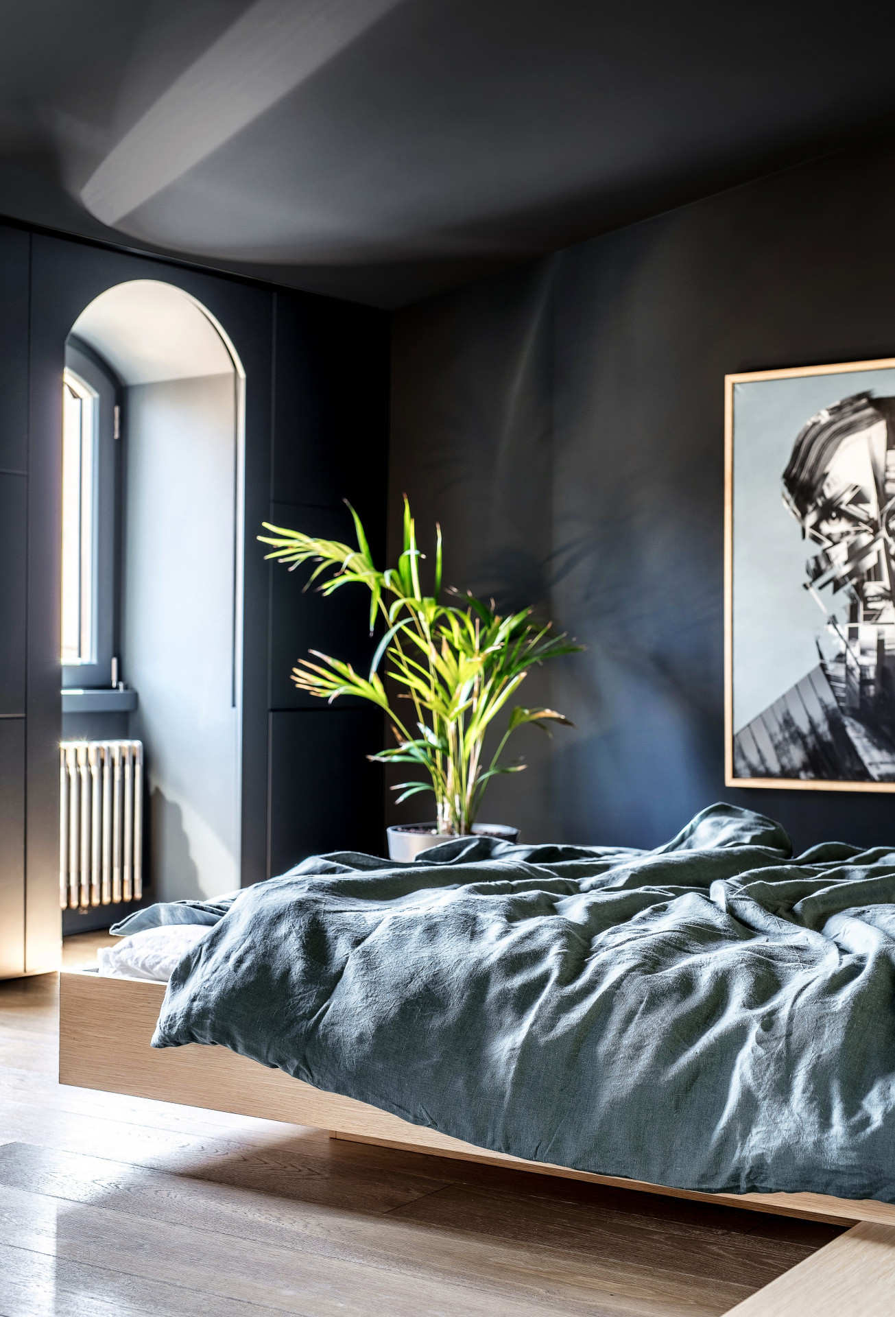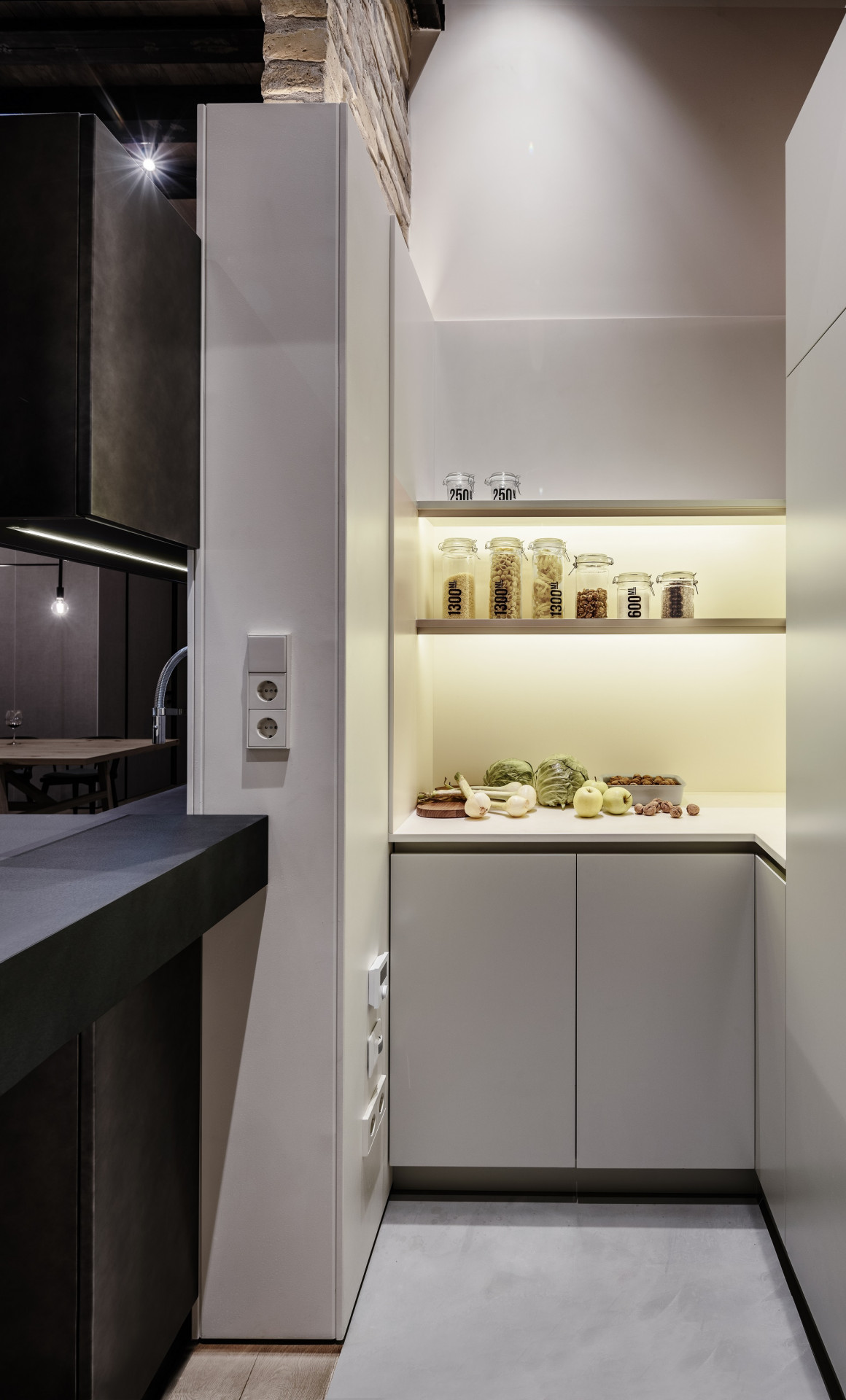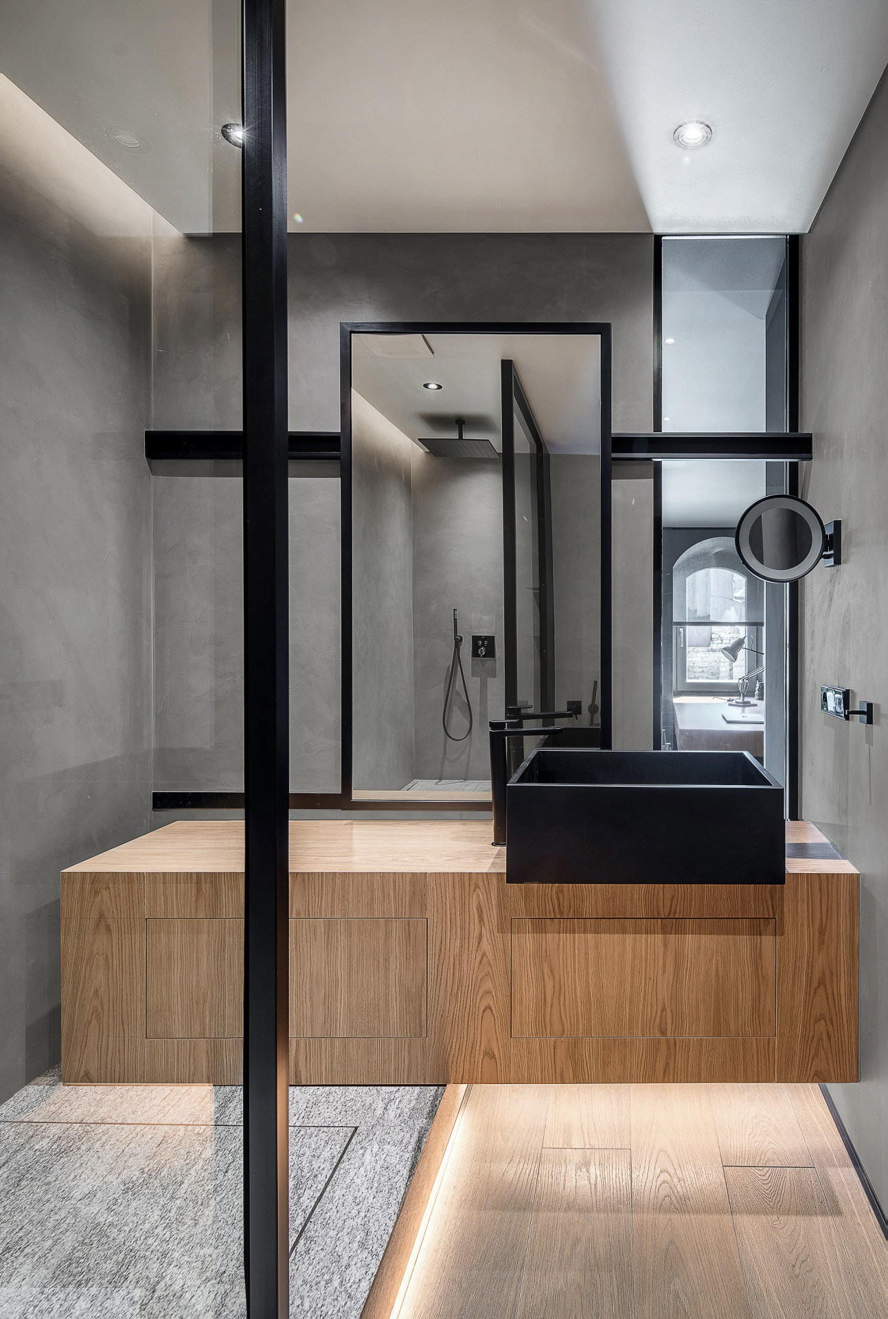 Proměna interiéru historického domu pracuje s monochromními surovými materiály, takže vynikají původní prvky a důmyslné detaily pro využití každého zákoutí.