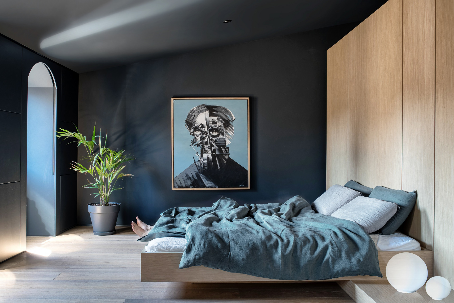 Apartmán pro etablovaného umělce na první pohled prokazuje navázání na historické kořeny obytné budovy novými prvky, které vzdušné prostory doplňují a oživují. Architekti se rozhodli částečně odstranit vnitřní dělící příčky, takže se i díky vysokým stropům celý prostor významně nadechl. Architekti přiznalo původní zděnou konstrukci včetně dřevěných trámů s tím, že všemu původnímu byla věnována maximální pozornost „Povedlo se zachovat 90 procent původní šroubů, které byly očištěny a přelakovány“, zmiňují architekti.
