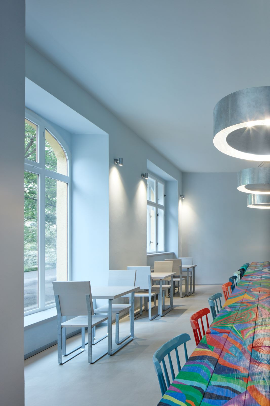 Interiéru pražské restaurace Avocado gang od studia Mimosa vévodí dlouhý pestrobarevný stůl