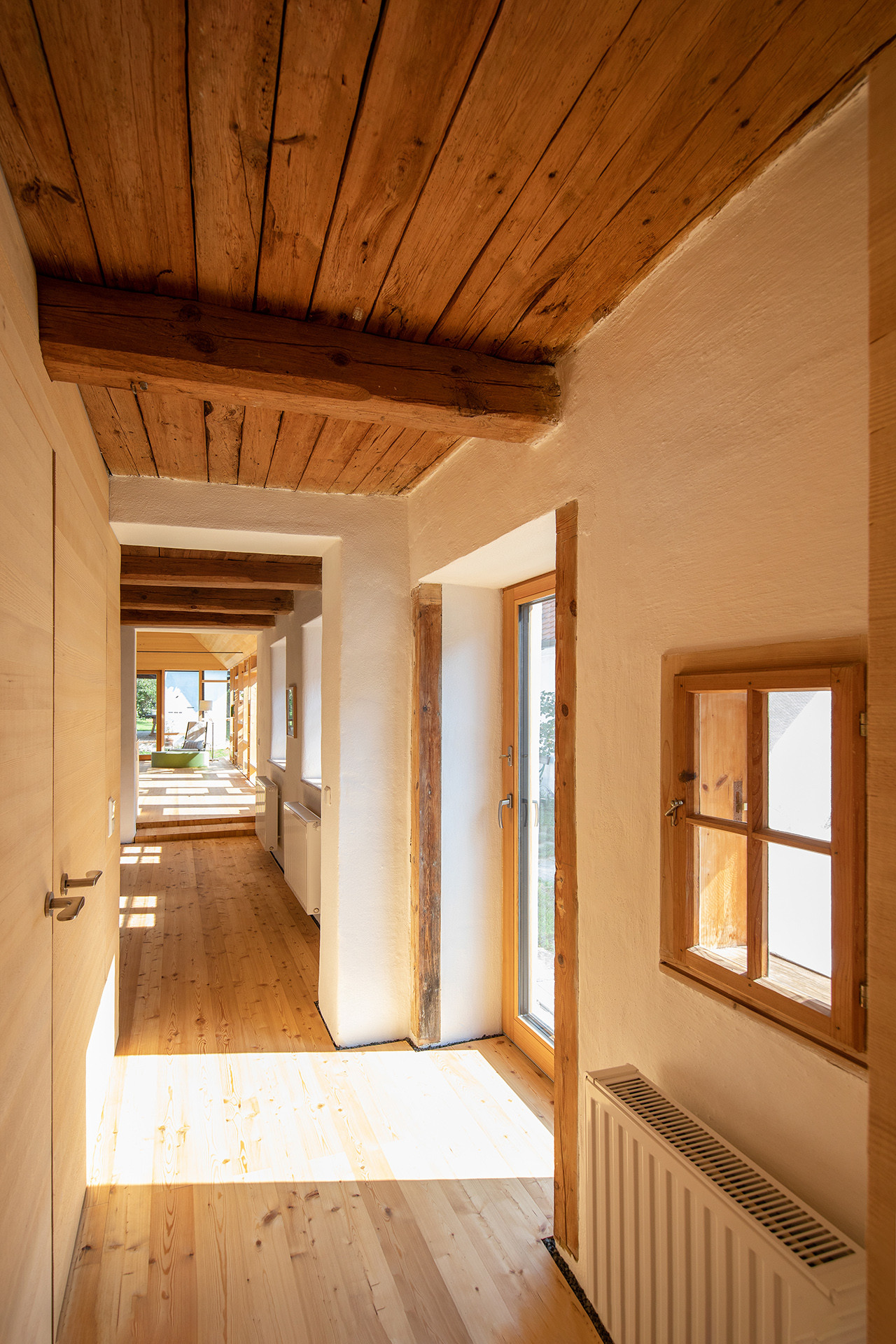 Výběr materiálů se nese v souladu s historií domu. Tradiční dřevo, hlína a vápno jsou i u nových částí zachovány bez povrchové úpravy, aby nebyla omezena difuzní otevřenost a regulace vlhkosti. Přírodní materiály tak můžou naplno předvádět své přednosti, díky kterými novým uživatelům nabízí zdravé vnitřní prostředí a splňují také aspekty udržitelné výstavby.