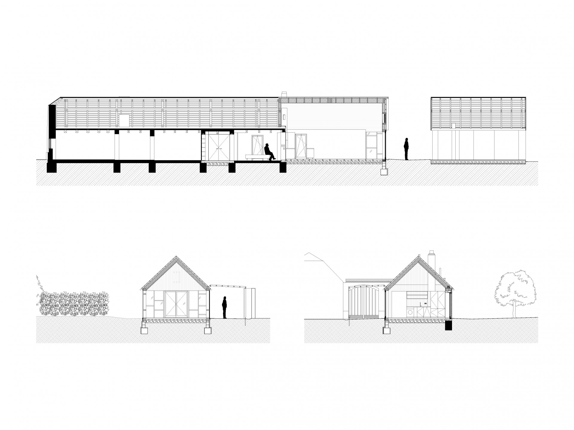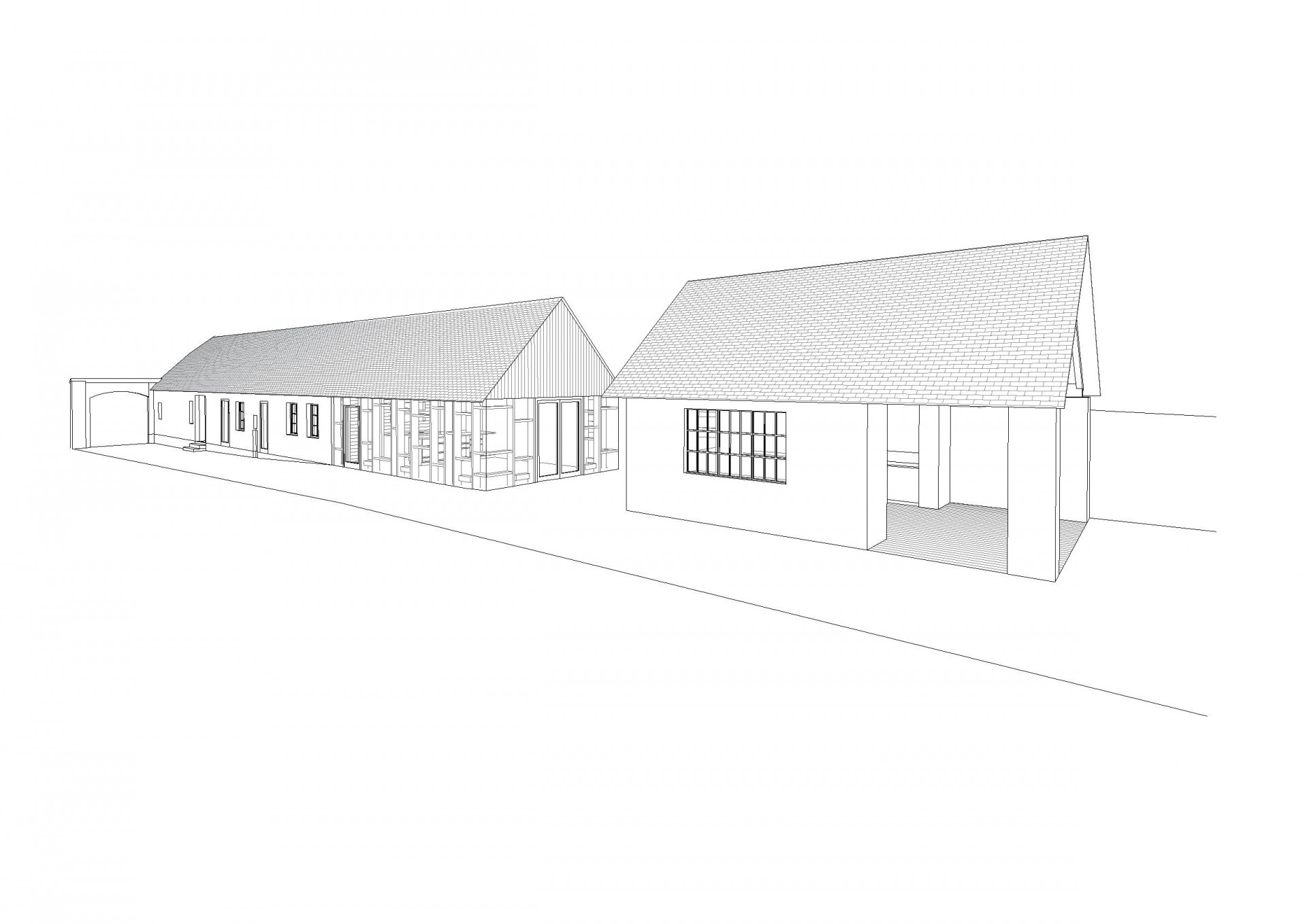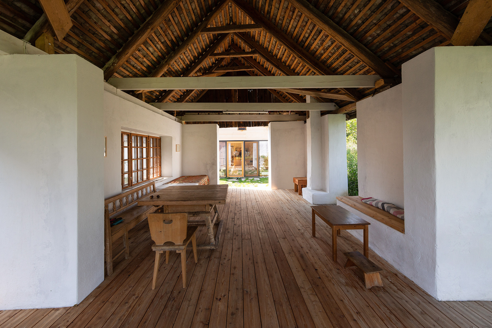 Staré dílenské prostory, které byly v dezolátním stavu a sklad byly s výjimkou hliněných stěn tlustých 60 centimetrů odstraněny a nahrazeny novou dřevostavbou s otevřeným průhledem do krovu. Podlouhlá původní střecha se starou krytinou přesahuje nad novou část, která jako by byla vetknuta do staré substance. Pro tento účel byly použity staré střešní tašky.