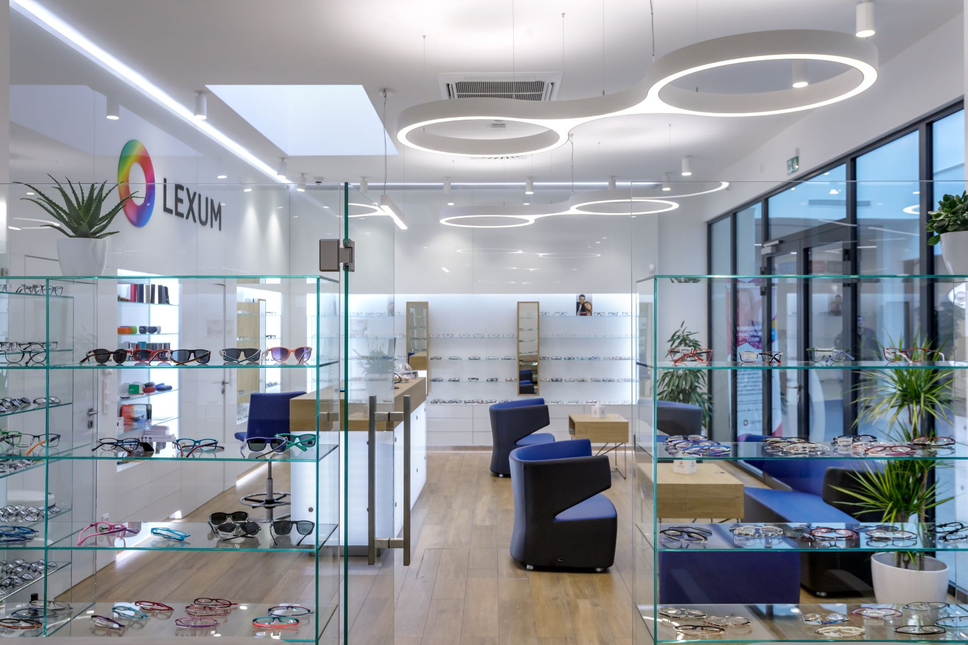 Spolupráce pokračovala také se společností CORNEA LEXUM, která provozuje síť očních optik po celé České republice. Architekt Igor Maťha navrhl moderní a velmi konkurenceschopný výstavní systém, který se stává výrazným prvkem v rámci českých optik. Tento systém navazuje na design recepce společnosti LEXUM a kombinuje prémiové materiály, jako je sklo, dřevo a LED osvětlení. Bílá barva a sklo byly doplněny přírodním dekorem dřeva, což elegantně ladí s celkovým konceptem.