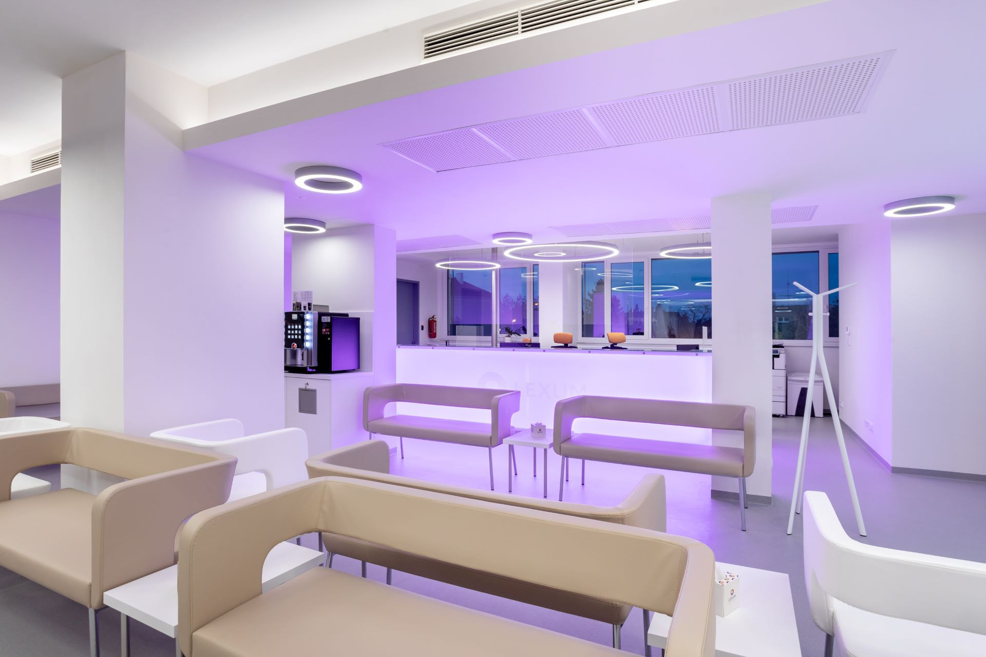 Jak sluší spojení designu a funkčnosti moderním zdravotnickým prostorám, ukazují interiéry společnosti LEXUM a CORNEA LEXUM.